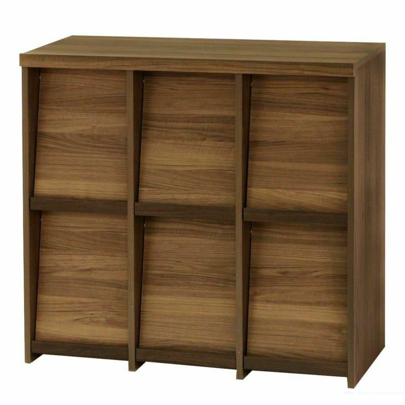ディスプレイラック 幅95cm 高さ89cm ダークブラウン フラップ扉 本棚 飾り棚 シェルフ