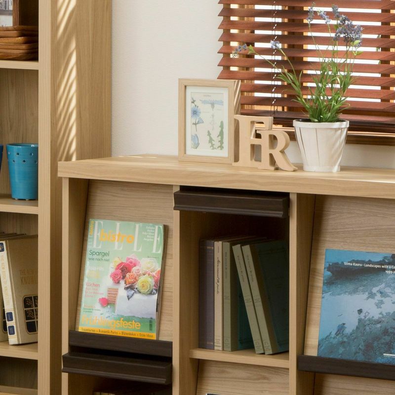ディスプレイラック 幅95cm 高さ89cm 白木目 フラップ扉 本棚 飾り棚 シェルフ