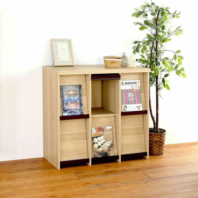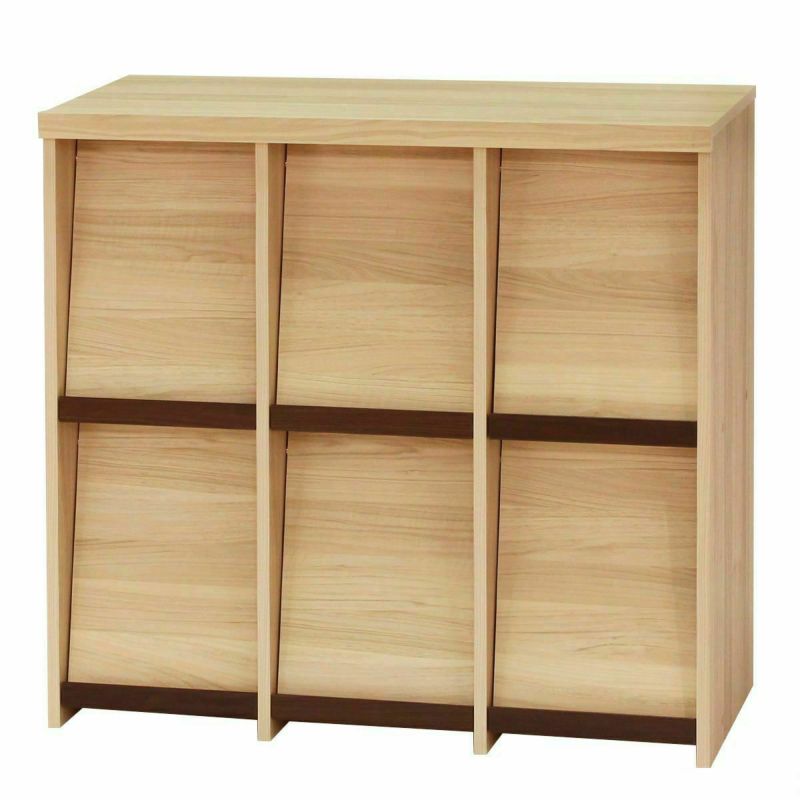 ディスプレイラック 幅95cm 高さ89cm ナチュラルブラウン フラップ扉 本棚 飾り棚 シェルフ