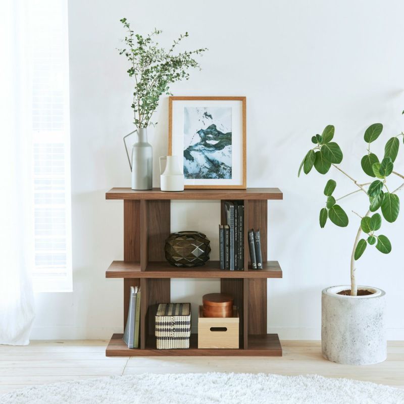 複数の商品を横に並べて使うと左右の棚の高さが揃って1つの棚のように。サイズ違いで並べると、段差がおしゃれなインテリアを楽しめます。棚1段の内寸高さは33.4cm。A4サイズの雑誌などが収納できる高さです。棚板1枚あたりの耐荷重は20kg。厚い本や大きめで重たい花瓶なども収納してディスプレイを楽しめます。棚板の左右の耐荷重は5kg。数冊の本の収納やディスプレイ棚におすすめです。自然の素材感が表現された、優しい印象を与える木目調となっています。厚さ3cmの板厚はボリューム感を感じさせ、無垢材をイメージさせます。オプションで組立サービス(有料)が選択できます。専門スタッフが組み立てた、組立済みの商品を玄関までお届けします。