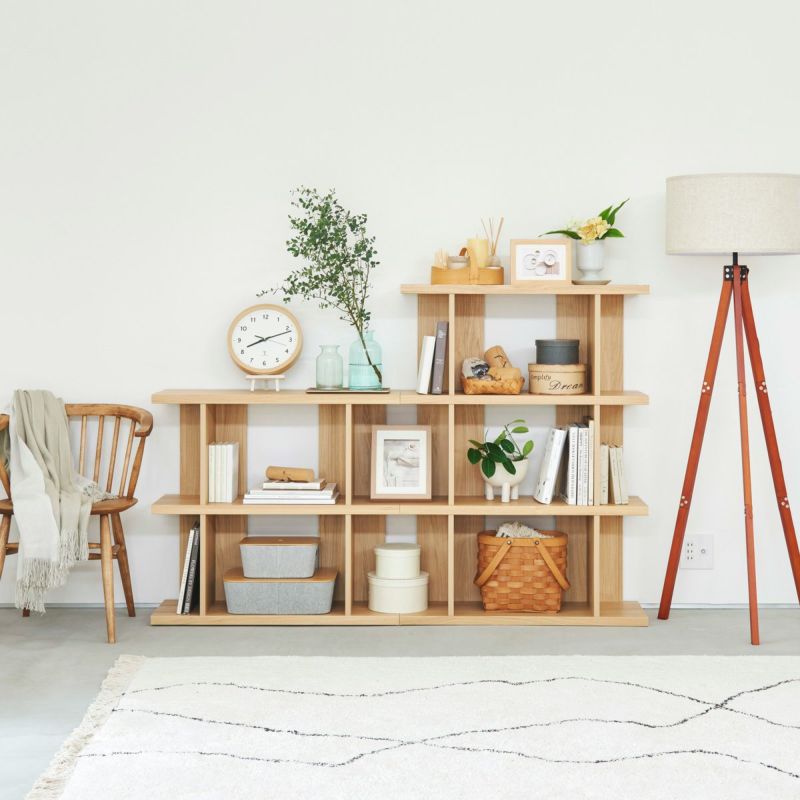 複数の商品を横に並べて使うと左右の棚の高さが揃って1つの棚のように。サイズ違いで並べると、段差がおしゃれなインテリアを楽しめます。棚1段の内寸高さは33.4cm。A4サイズの雑誌などが収納できる高さです。棚板1枚あたりの耐荷重は20kg。厚い本や大きめで重たい花瓶なども収納してディスプレイを楽しめます。棚板の左右の耐荷重は5kg。数冊の本の収納やディスプレイ棚におすすめです。自然の素材感が表現された、優しい印象を与える木目調となっています。厚さ3cmの板厚はボリューム感を感じさせ、無垢材をイメージさせます。オプションで組立サービス(有料)が選択できます。専門スタッフが組み立てた、組立済みの商品を玄関までお届けします。