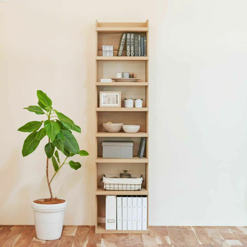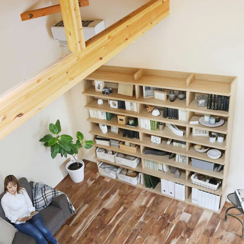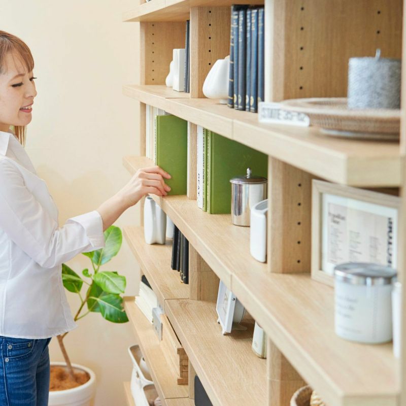 複数を並べると一枚の板が端から端に通った造り付けの棚のように。一日に何度も眺めてしまう、自慢の収納をつくることができます。迫力のある2mの高さが、造り付けの棚のように壁を本や雑貨で埋め尽くします。
