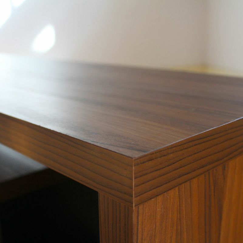 厚みのある板をL字に配置。シンプルで力強いフォルムです。木質感の高い木目シートを使用しています。リッチで落ち着いた印象を与えます。オプションで組立サービス(有料)が選択できます。専門スタッフが組み立てた、組立済みの商品を玄関までお届けします。