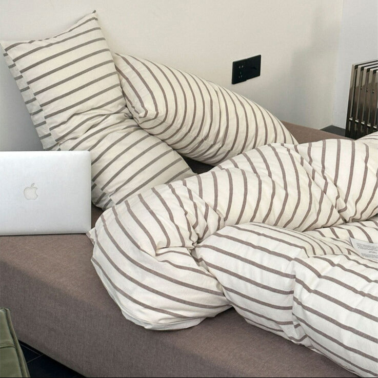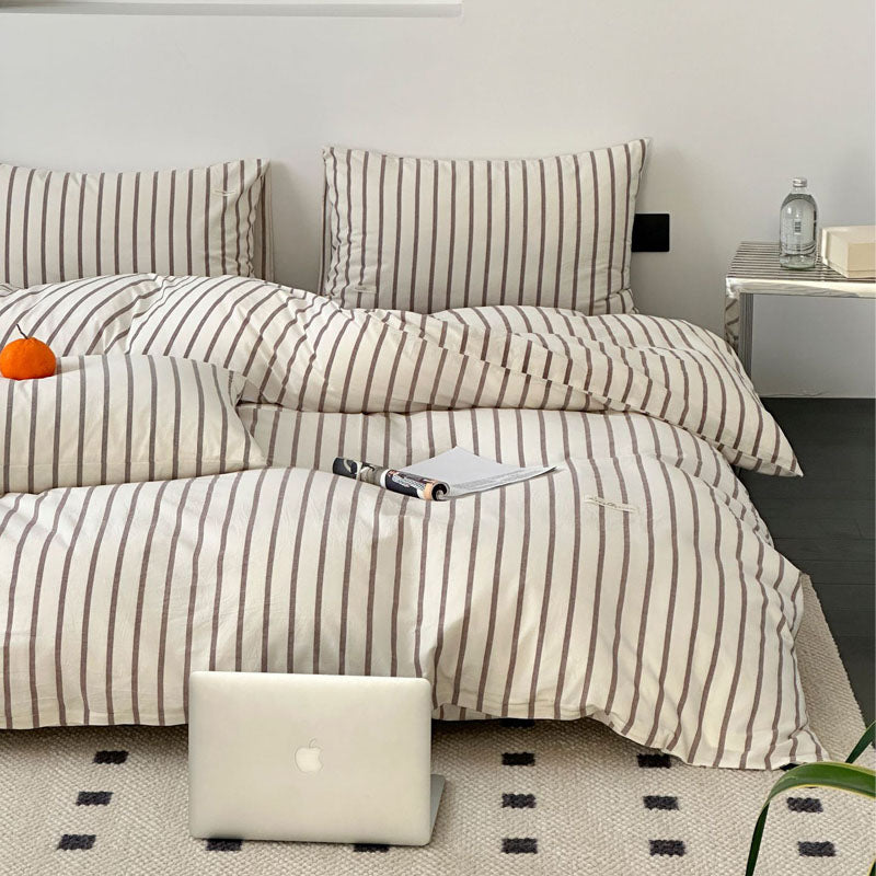 コットン100%使用の寝具セットです。掛け布団カバー、シーツ、枕カバーの3点セットです。フラットシーツタイプとボックスシーツタイプの2種類から選ぶことができます。