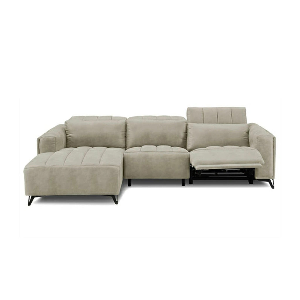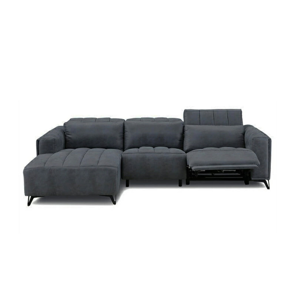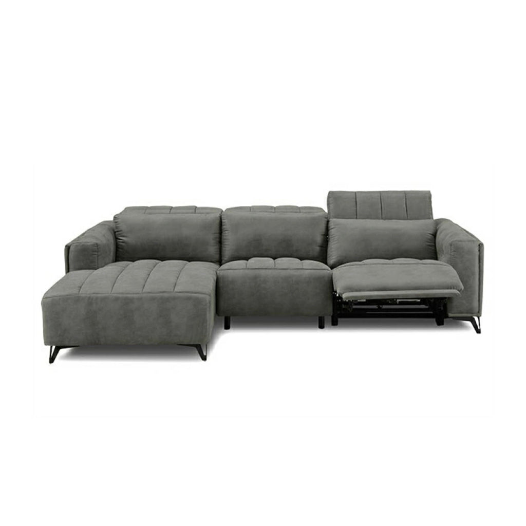ヘッドレストリクライニング機能と電動フットアップ機能が搭載された3人掛けのカウチソファです。ゆったりとくつろぐことができます。