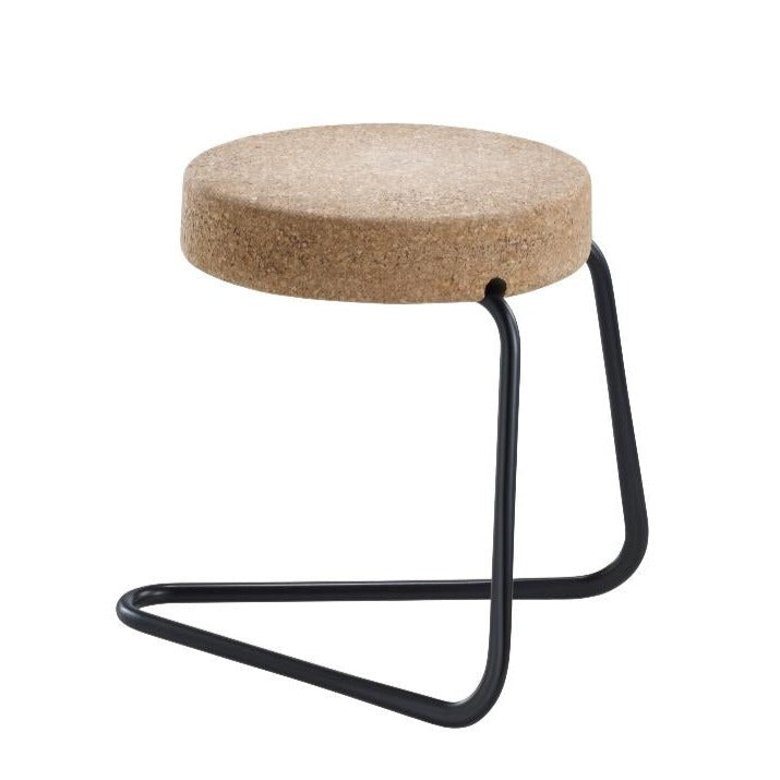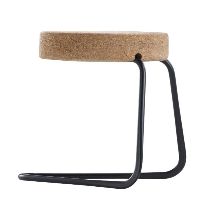 片持ち梁構造のスツールです。その構造は見た目に反して非常に柔らかい座り心地をもたらしています。座面にはコルクを採用し無機質になりがちなスチールレッグのアクセントになっています。