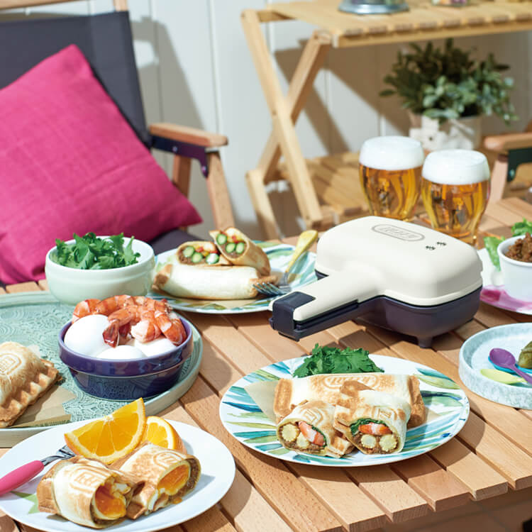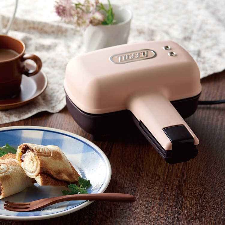 ちょこっとサイズがうれしい、ハーフホットサンドメーカー 朝ごはんやおうちカフェで大活躍するハーフホットサンドメーカーです。一枚の食パンで作るハーフサイズなので、小さいお子さまや女性にもうれしい食べきりサイズ。中の具材を工夫することであらゆるレシピになるので、飽きることなくホットサンドを楽しめます。好みによって選べる3色のカラーバリエーション カラーは、優し気なピンク、爽やかなペールアクア、明るい印象のホワイトをご用意しました。かわいらしいパステルカラーが食卓を華やかに。お好みや、キッチンの雰囲気に合わせてお好きなカラーを選んでみてください。使い勝手のいいサイズ感と重量 食卓に並べてもテーブルウェアとして違和感のないサイズ感。重量も約750gと持ち運びしやすく使い勝手がいいです。具材はハンドル部分のロックが掛けられる程度の量に調整してください。ケガや火災の原因になりますので、ふたを開けたまま調理しないでください。食事にもデザートにもぴったり 朝食やおやつ時間など、具材を変えてあらゆるシーンで楽しめます。食事時にはハムチーズなどの定番から、しょうゆバター風味のコーンを入れた変わり種など。いちごとクリームチーズ、ホワイトチョコを合わせれば、カフェタイムにぴったりなティーフードに。あまったカレーでアレンジなどレシピの幅は無限大です。限られた収納スペースでもコンパクトに コンパクトサイズで立てられるため収納にも場所を取りません。カップボードにキャニスターと一緒に並べて置いておけます。本体の背面ベースにコードを巻き付けて収納可能です。お手入れはよく絞ったふきんで優しく拭いた後、乾いた布で水分を拭き取ってください。