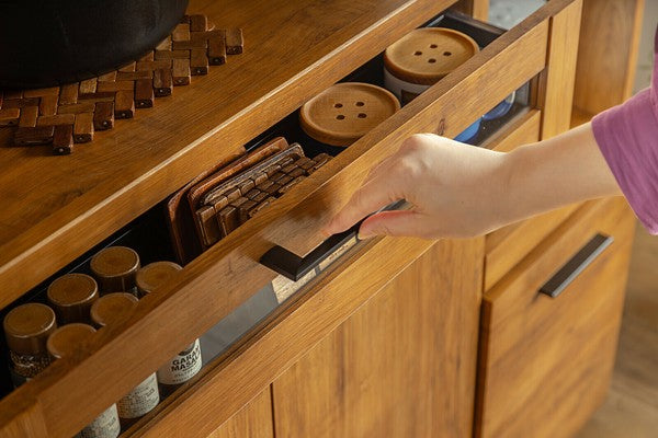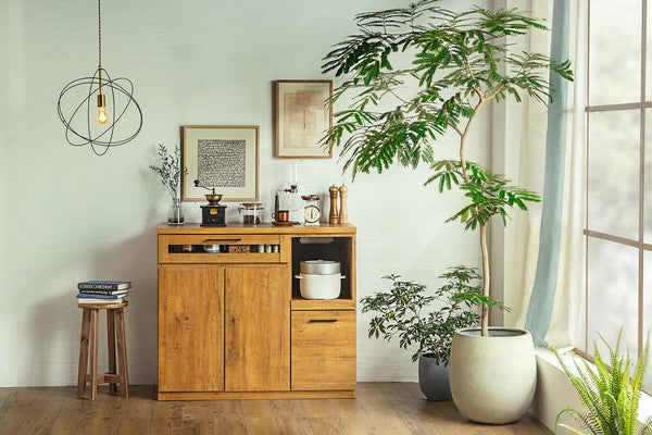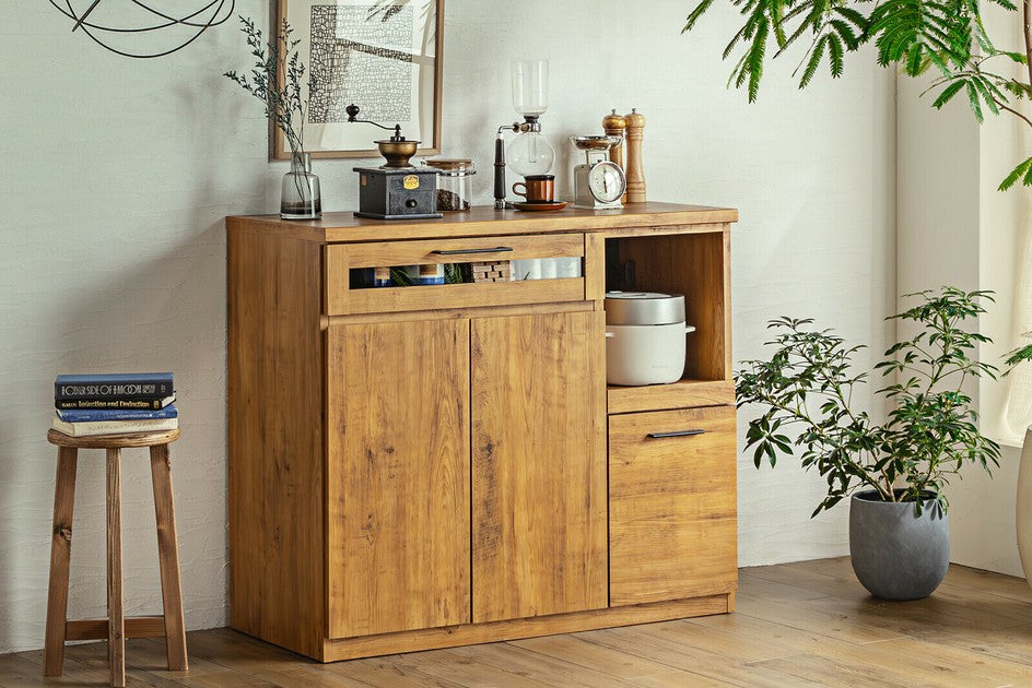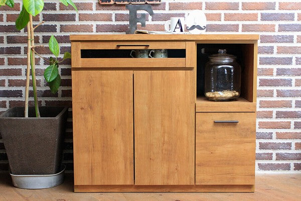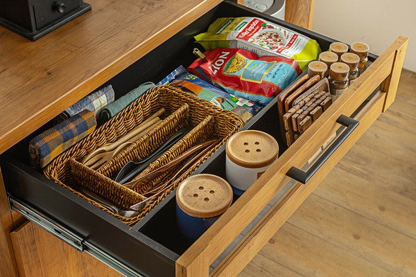リアルな質感のあるビンテージスタイルのキッチン収納シリーズです。キッチンを今流行りのメンズライクな空間へ。無駄のないシンプル&スタイリッシュなデザインで、コストも最小限に抑えています。引出は奥の物も取り出しやすいフルスライドレール仕様です。