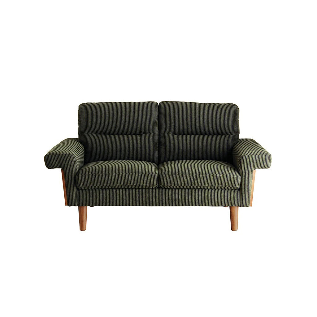お部屋を心地のいい空間にかえるモスグリーンのソファです。様々なスタイルに合わせやすいアイテムです。コンパクトながら、座面の幅がしっかりあるアイテムです。コーデュロイ風生地が、ウォールナット材と相性抜群。ウォールナットの側板が、商品を引き締めつつ横から見ても美しいソファーに仕上がっております。