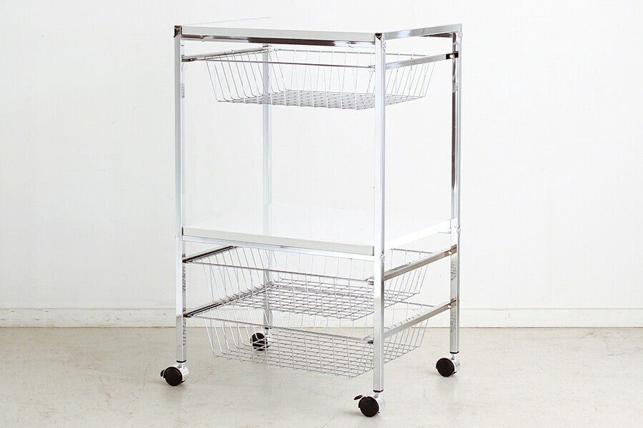 3サイズ展開のキッチンワゴンです。キャスターはストッパー付きです。高級感ある質感とスチールの組合せがお洒落です。