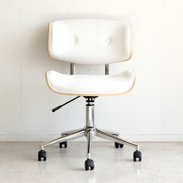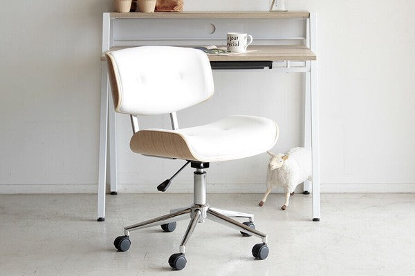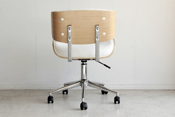 丸みを帯びた曲木と合成皮革の組み合わせがモダンレトロなデザインのオフィスチェアです。座面と背もたれのクッション性はほど良い硬さで曲木のしなやかなフォルムが身体を優しく包み込みます。