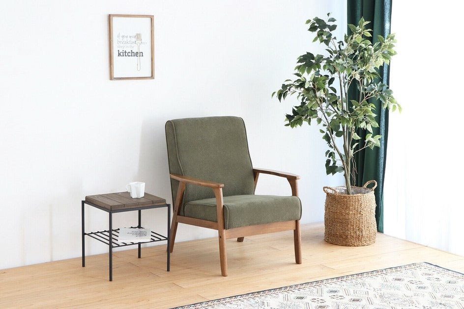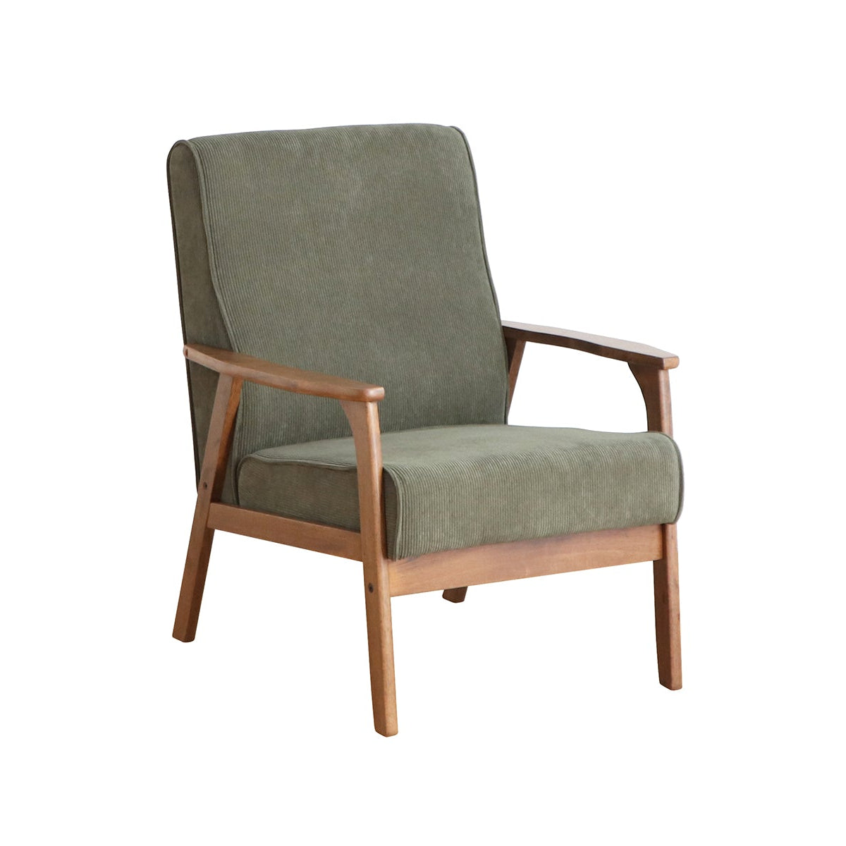 木とコーデュロイ風の生地がマッチしたおしゃれなソファです。おしゃれなカフェのような雰囲気がある1PKD仕様です。2カラー展開。木肘はLBR色なのでインテリアに合わせやすい色合い。