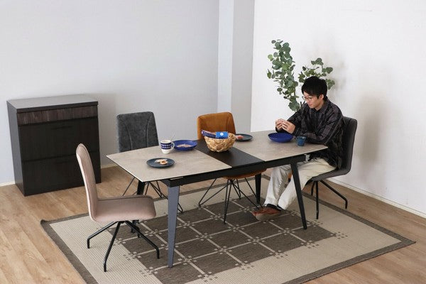 使用する時々によって伸縮可能な耐久面に優れたセラミックテーブルです。セラミックテーブルシリーズ“CELA”より伸長式のダイニングテーブルが登場、お部屋の広さに合わせたり、人が集まった際に変更したりなど、場合によって様々な使い方のできるセラミックテーブルとなっており ます。天板は幅140cm/170cmの2つを自由に可変できる伸長式の天板を採用。人を呼んだり、する際などその時々によって天板の長さを変えることができます。