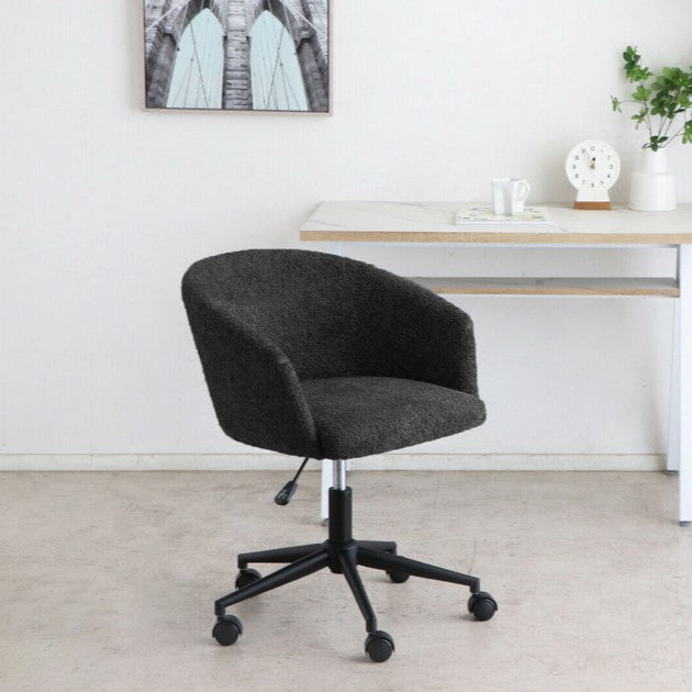 手触りのいいもこもこしたブークレ素材のデスクチェアです。リビングデスクチェアのとしてもおしゃれにコーディネートできます。