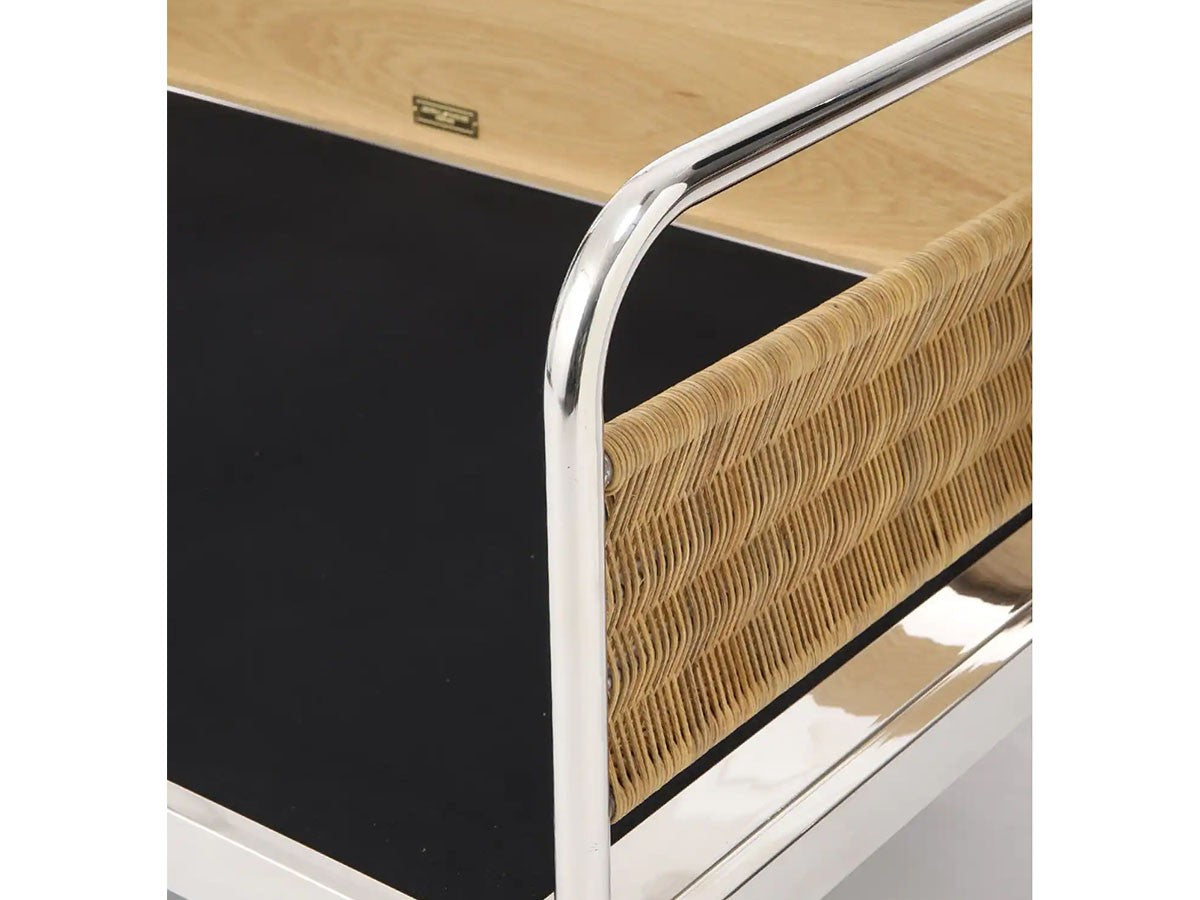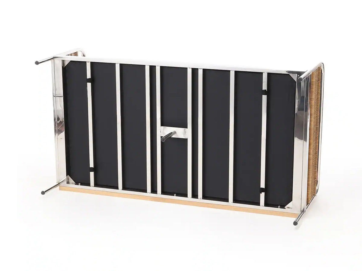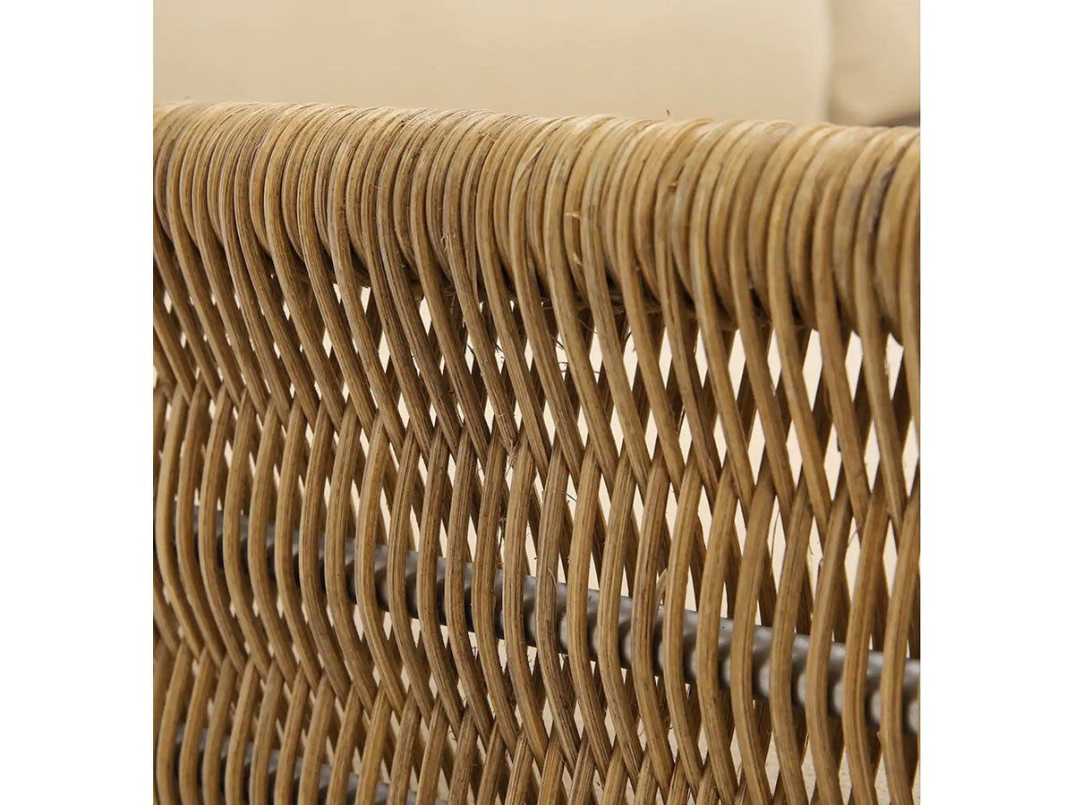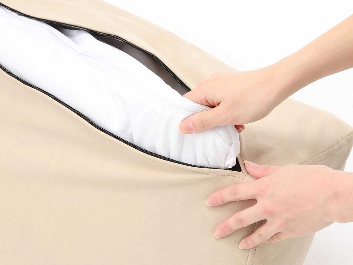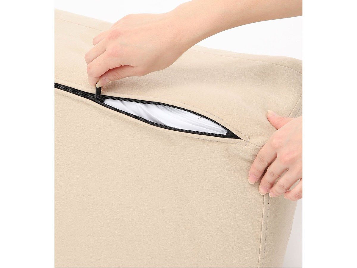 オランダのヴィンテージソファをベースとして、リデザインされた2人掛けソファ。フレームのステンレス、ラタン、木、スエード調の張地と、異素材をミックスすることで、パーツ毎に異なる質感を楽しめ、飽きのこないデザインとなっています。座面は硬めで、安定感のあるしっかりとした座り心地です。クッションは座と背ともにカバーリング仕様となっており、ドライクリーニングでお手入れが可能です。フレーム本体は組み立て式のため、搬入経路が狭い住宅にもおすすめです。