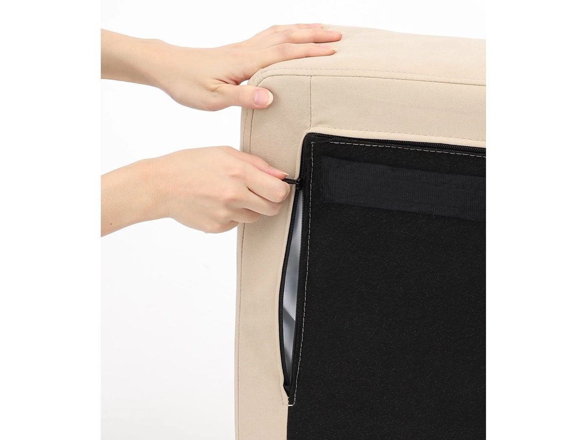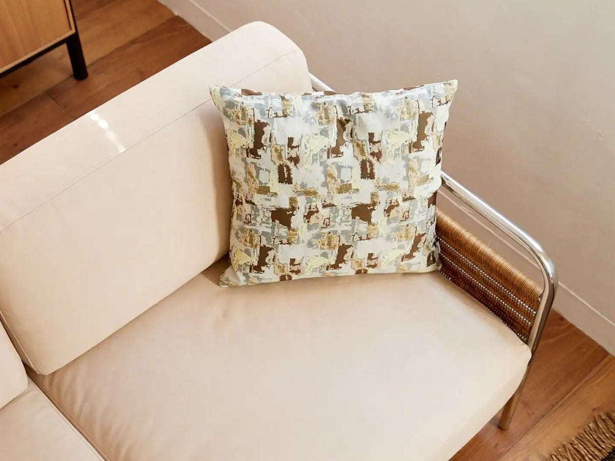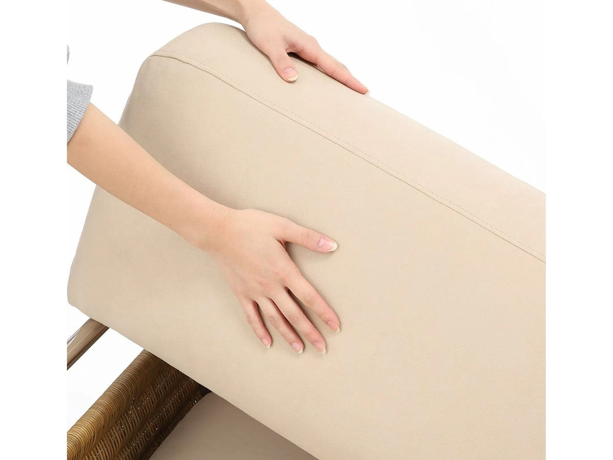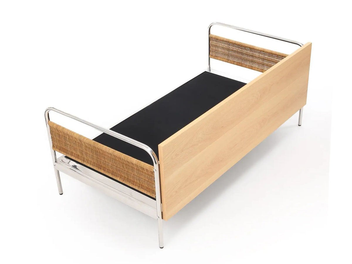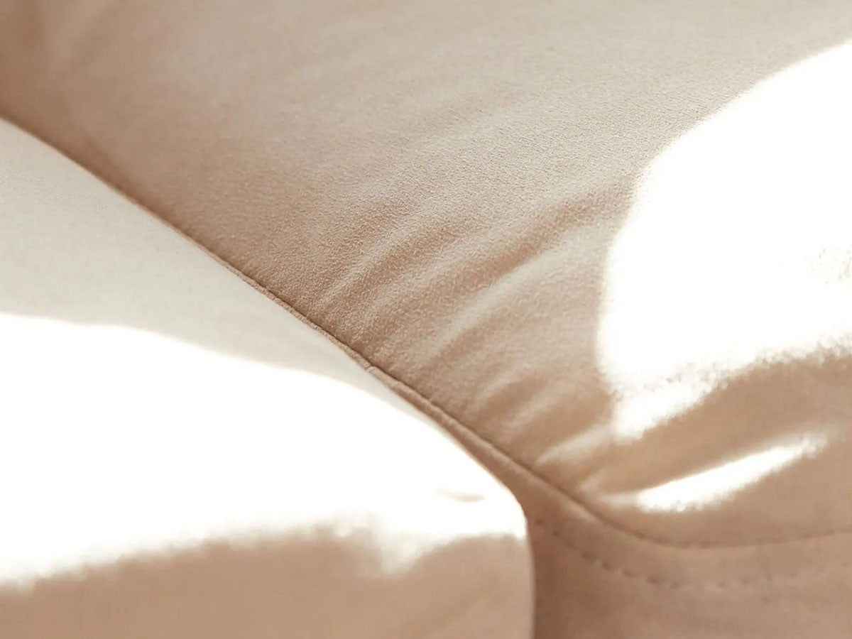 オランダのヴィンテージソファをベースとして、リデザインされた2人掛けソファ。フレームのステンレス、ラタン、木、スエード調の張地と、異素材をミックスすることで、パーツ毎に異なる質感を楽しめ、飽きのこないデザインとなっています。座面は硬めで、安定感のあるしっかりとした座り心地です。クッションは座と背ともにカバーリング仕様となっており、ドライクリーニングでお手入れが可能です。フレーム本体は組み立て式のため、搬入経路が狭い住宅にもおすすめです。
