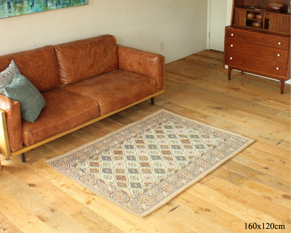 1920年代頃のCAUCASUS RUGのデザインを元にした、ACME Furniture(アクメファニチャー)の「GLENOAKS RUG(グレンオークスラグ)」です。1920年代頃のCAUCASUS RUGのデザインを元に製作しています。ペルシャラグのような高級感がありつつ、アメリカンヴィンテージテイストと相性抜群。使い込むとさらにその魅力が増していきます。ベースカラーは馴染みの良いベージュカラーで多色使用しているので、ACMEのどんな家具にも合わせていただきやすいです。CAUCASUS RUGとは東ヨーロッパと西アジアの境界付近にある、黒海とカスピ海に挟まれた地域、コーカサスで織られている毛足が短く幾何学的なモチーフで豊富な表現力と想像力でつくられているラグのこと。ラグのサイズも幅広く展開していますので、ソファ前や、ダイニングテーブル下、インテリアのアクセントとして、空間に合わせてお選びいただけます。
