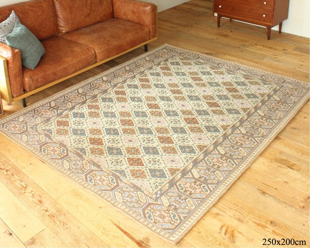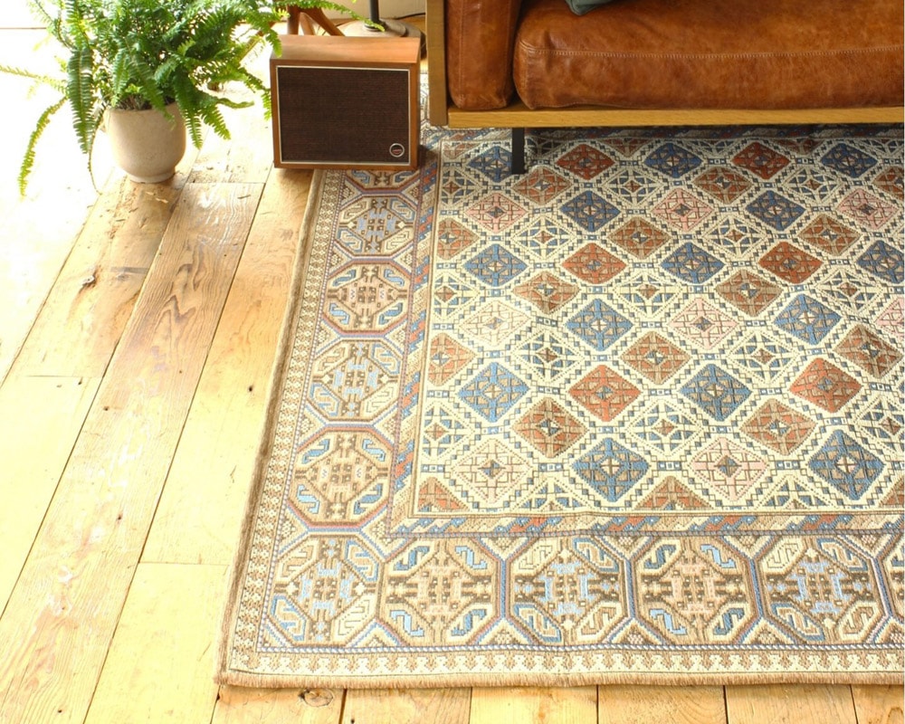 1920年代頃のCAUCASUS RUGのデザインを元にした、ACME Furniture(アクメファニチャー)の「GLENOAKS RUG(グレンオークスラグ)」です。1920年代頃のCAUCASUS RUGのデザインを元に製作しています。ペルシャラグのような高級感がありつつ、アメリカンヴィンテージテイストと相性抜群。使い込むとさらにその魅力が増していきます。ベースカラーは馴染みの良いベージュカラーで多色使用しているので、ACMEのどんな家具にも合わせていただきやすいです。CAUCASUS RUGとは東ヨーロッパと西アジアの境界付近にある、黒海とカスピ海に挟まれた地域、コーカサスで織られている毛足が短く幾何学的なモチーフで豊富な表現力と想像力でつくられているラグのこと。ラグのサイズも幅広く展開していますので、ソファ前や、ダイニングテーブル下、インテリアのアクセントとして、空間に合わせてお選びいただけます。