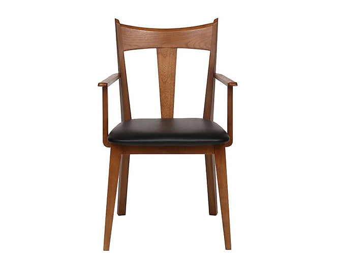 背もたれ上部のカーブが特徴的で、アメリカのサンディエゴにあるサーフスポットが名前の由来になっている、ACME FURNITURE(アクメファニチャー)のカーディフシリーズのダイニングチェア「CARDIFF ARM CHAIR(カーディフアームチェア)」です。同シリーズでアーム付きとアームなしのバリエーションのある数少ないチェアで、ダイニングテーブルへのコーディネートの幅が広がります。ストレートに伸びたアームは横に広がらないデザインで、となりに置いてもストレスを感じず、テーブルからの出し入れもスムーズ。シートはクッション付きのビニルレザー仕上げで、座り心地が良くお手入れも簡単。また2016年にスタイルはそのままにクッション構造などマイナーチェンジを行い、より座り心地が良くなっています。古き良きアメリカを再現したチェアは、西海岸のリラックススタイルコーディネートなどにも良く合うチェアです。