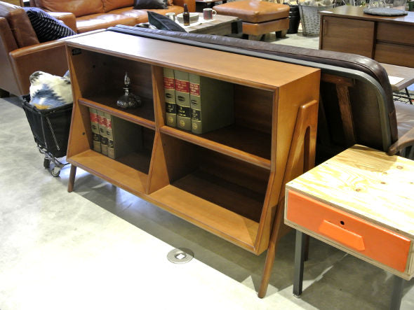 ヴィンテージ家具を元にデザインされたブックシェルフ。奥行きが浅く高さも抑えているため圧迫感の少ないサイズです。シャープなレッグラインにより横からの見映えもスマート。棚板は本のサイズに合わせて位置を調整できます。天板上はディスプレイスペースにもなります。
