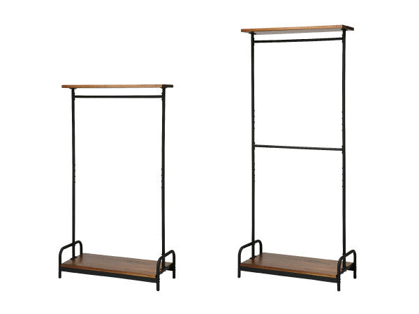 ACMEオリジナル「GRANDVIEW / グランビュー」シリーズのハンガーラック。深みのあるブラウンカラーとマットな質感のアイアンで、ほど良くインダストリアルな雰囲気に仕上げられています。上段には帽子や雑貨、下段には靴や脱いだ服を一時的に入れるバスケットを置いたりと用途は様々。オプションパーツを取り付けることで、高さ209.5cmの2段組みで使用することができます。