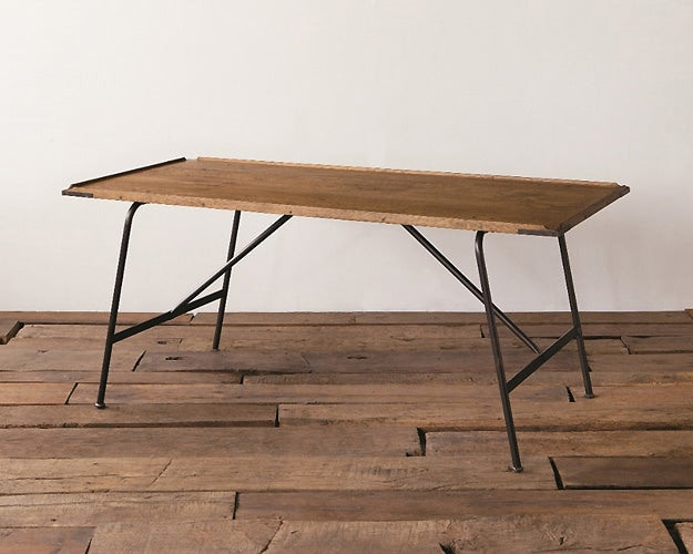 米海軍で使用されていたFOLDING TABLEを元にデザインしたACME FURNITURE(アクメファニチャー)の「BRIGHTON DINING TABLE(ブライトンダイニング テーブル)」です。天板のフチが立ち上がった特徴的なフォルムは、第二次世界大戦まで、アメリカ海軍に導入されたフォールディングテーブルをイメージソースににデザインされています。元々は波による揺れによってテーブル上に置いた食事や物などが転落してしまうことを防止するための立ち上がりですが、あえてその立ち上がりを残すことでデザインのアクセントとなっています。また、天板四隅には立ち上がりを無くしていますので、掃除のしやすさなど、実用面もを考慮されて設計しています。オークの無垢材は経年変化を楽しめ、あえて天板上に見せたマイナスネジが、細部にまでこだわりを感じ取ることができます。ゆったりと食事がとれる幅1650mmサイズと、少し小さめですが4人が食事するのに十分な1450mmの2サイズから、お部屋に合わせてお選び頂けます。