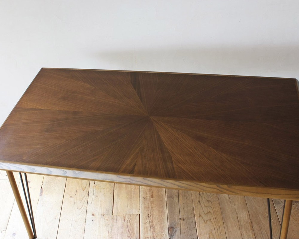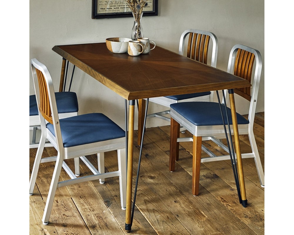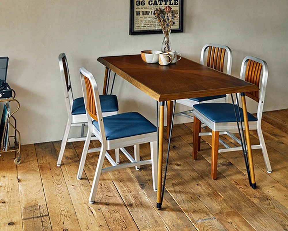 ACME FURNITURE(アクメファニチャー)のBELLS FactoryDining Table(ベルズ ファクトリーダイニングテーブル)です。インダストリアルな雰囲気でウッドとアイアンを組み合わせたの脚が特徴のダイニングテーブルです。天板にはアッシュの無垢材を周囲にまわし、特徴的な天板の意匠を兼ね備えたデザインに仕上げられています。脚のデザインと天板の形状がマッチしていて、コストパフォーマンスにも優れた雰囲気のあるダイニングテーブルです。