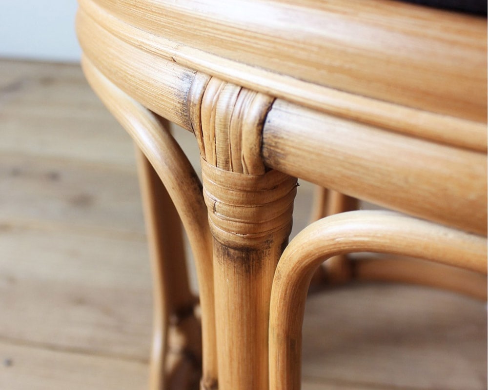 座り心地とデザインを兼ね備えたACME FURNITURE(アクメファニチャー)の「WICKER(ウィッカー)シリーズのイージーチェアとスツール」です。WICKER EASY CHAIR(ウィッカー イージーチェア)は、大きなラウンド状のクッションシートをラタンフレームに組み合わせ、日本の住空間にもマッチングするデザインになっております。程よく弾力性のあるクッションは包み込まれるようなホールド感があり、広いシートはあぐらをかいて座る事も可能です。また、ラタンのベースとトップはセパレートになっていて、シートを好みの角度にリクライニングも可能になっています。WICKER(ウィッカー)スツールは、単体でスツールとして使用するのはもちろん、同イージーチェアのオットマンとしても活用できる優れもの。そのデザインは部屋に置くと存在感を発揮しながら他の家具にも不思議と馴染んでくれます。