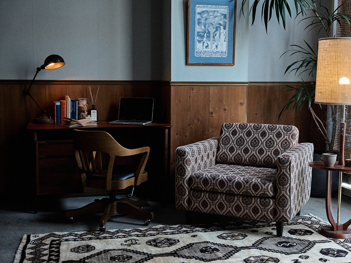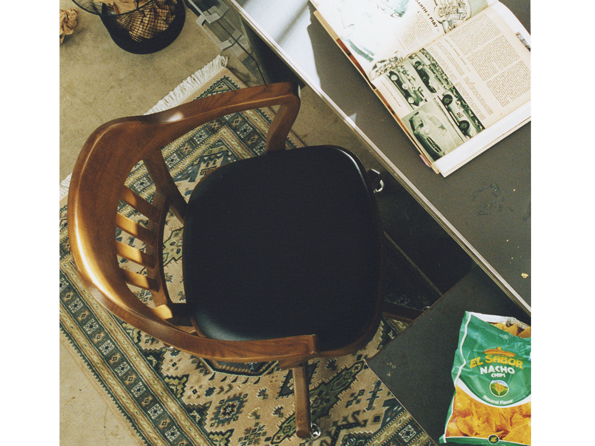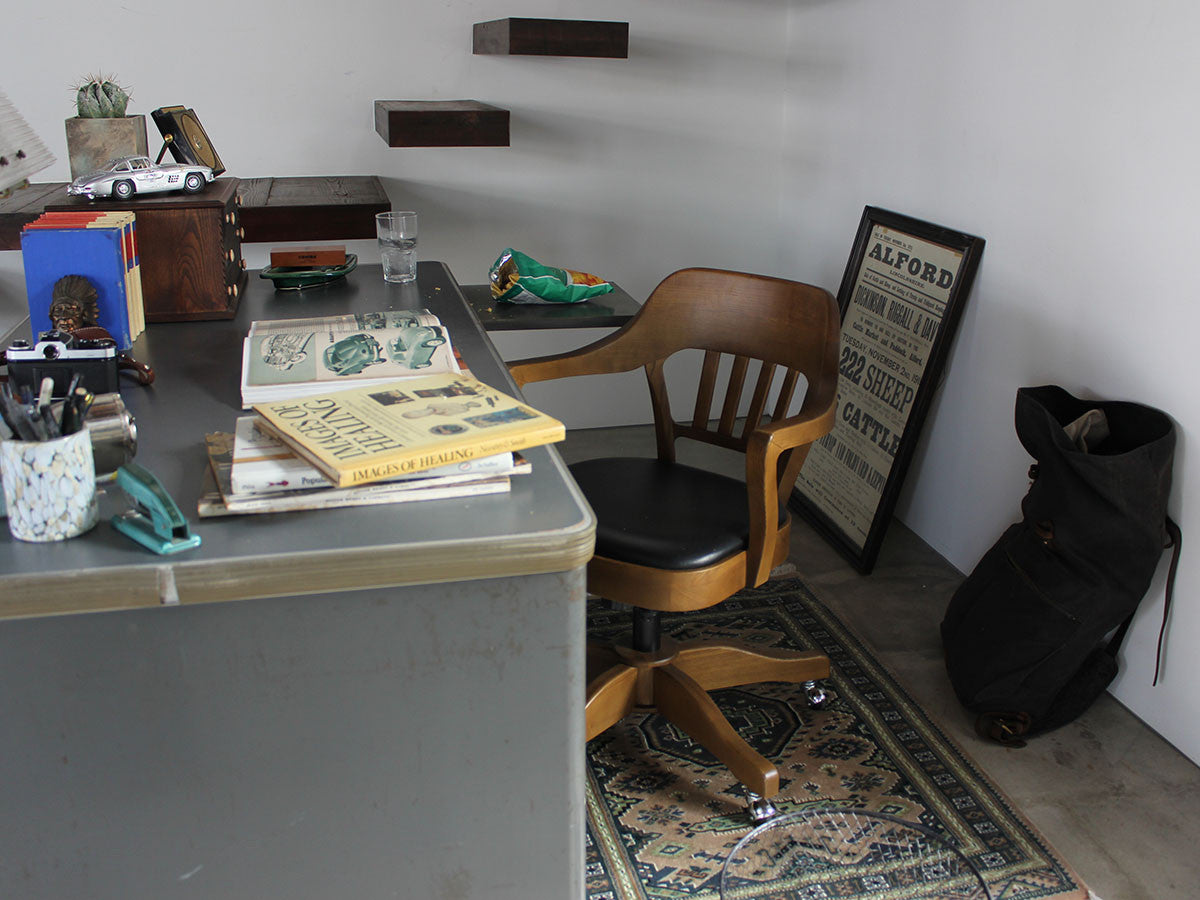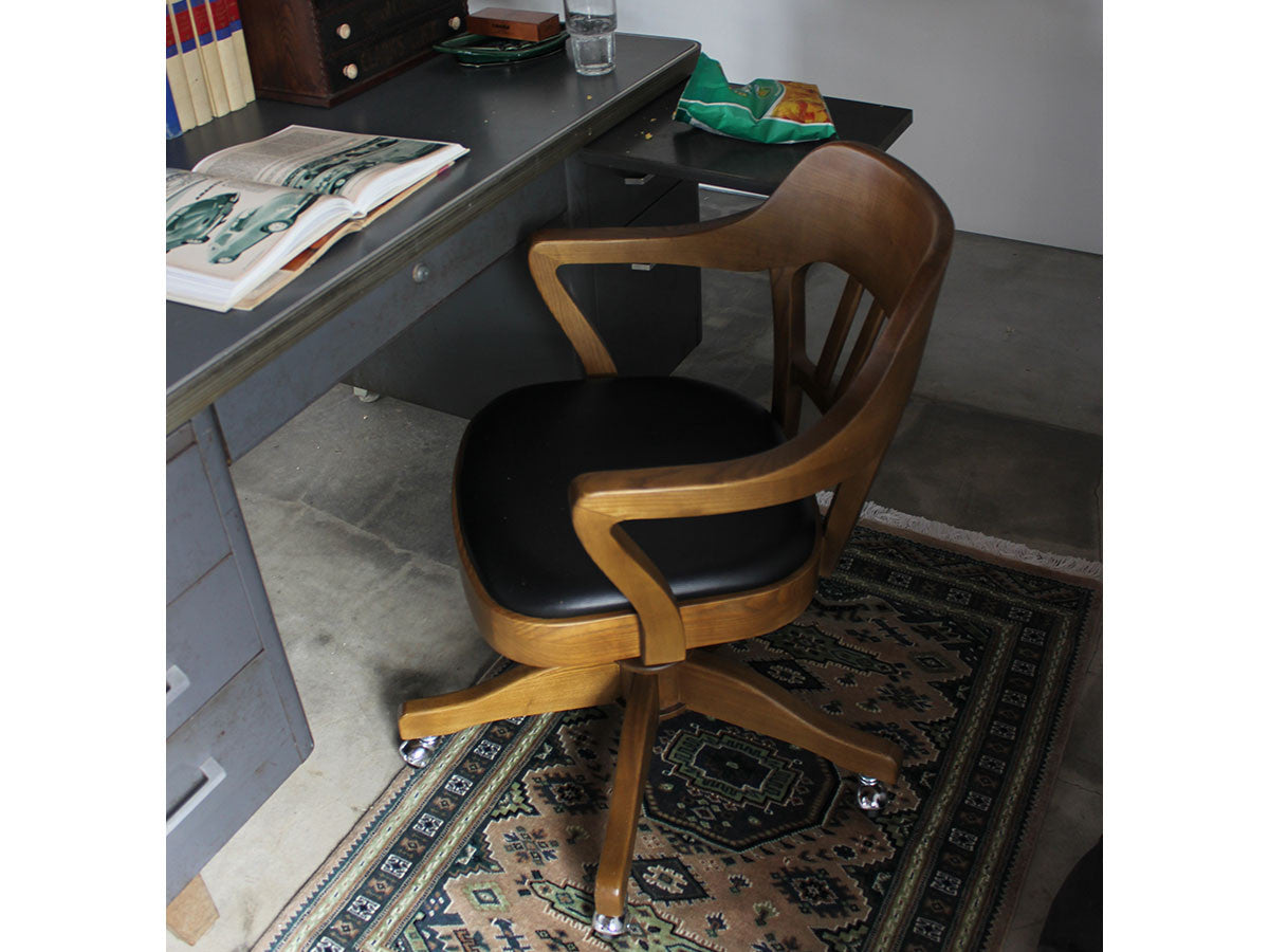 1910~20年代に生産されていたヴィンテージのデスクチェアを元に制作された椅子。ヴィンテージ家具空間に馴染むように仕上げながら、日本人の体型に合わせて扱いやすいように改めてサイジングされています。昇降やリクライニング機能は手軽に調節が出来る現代の仕様となっています。