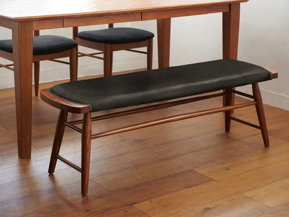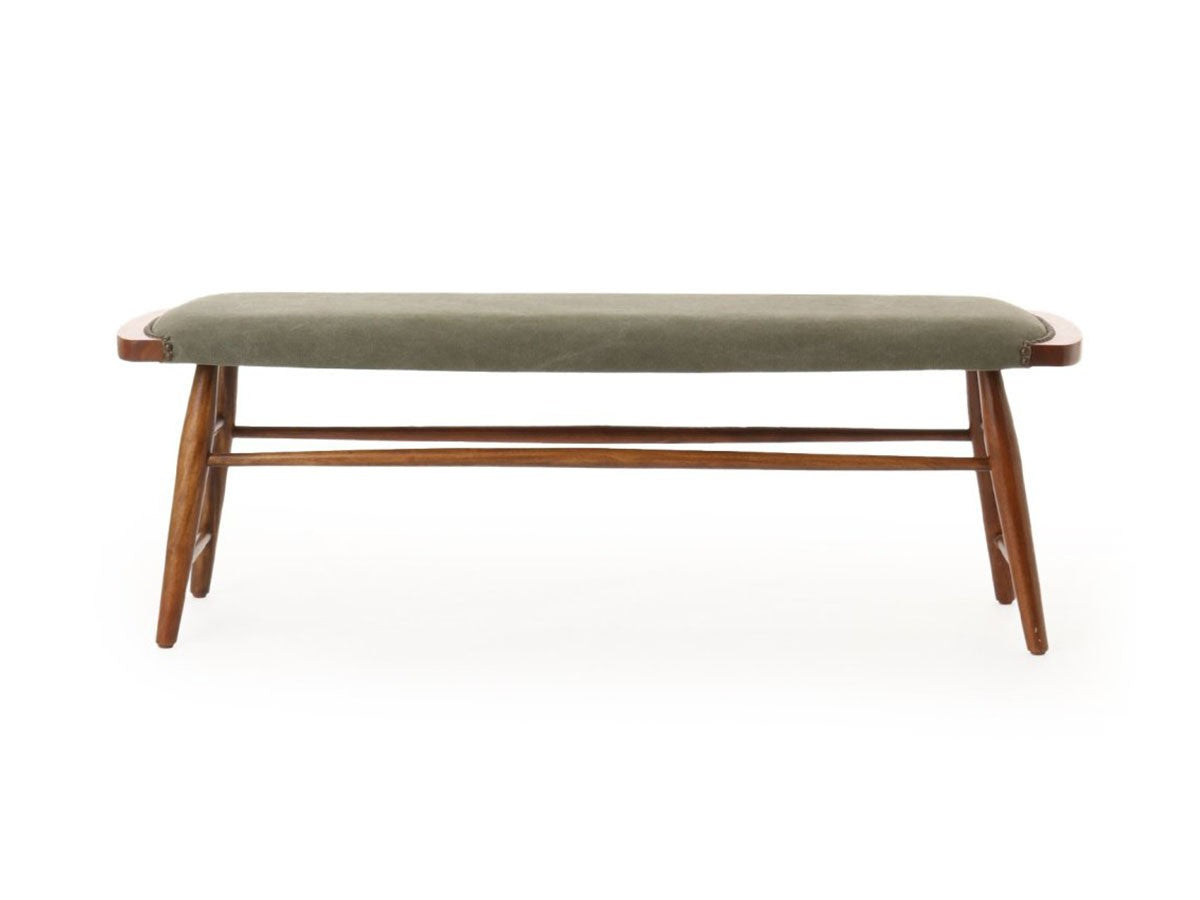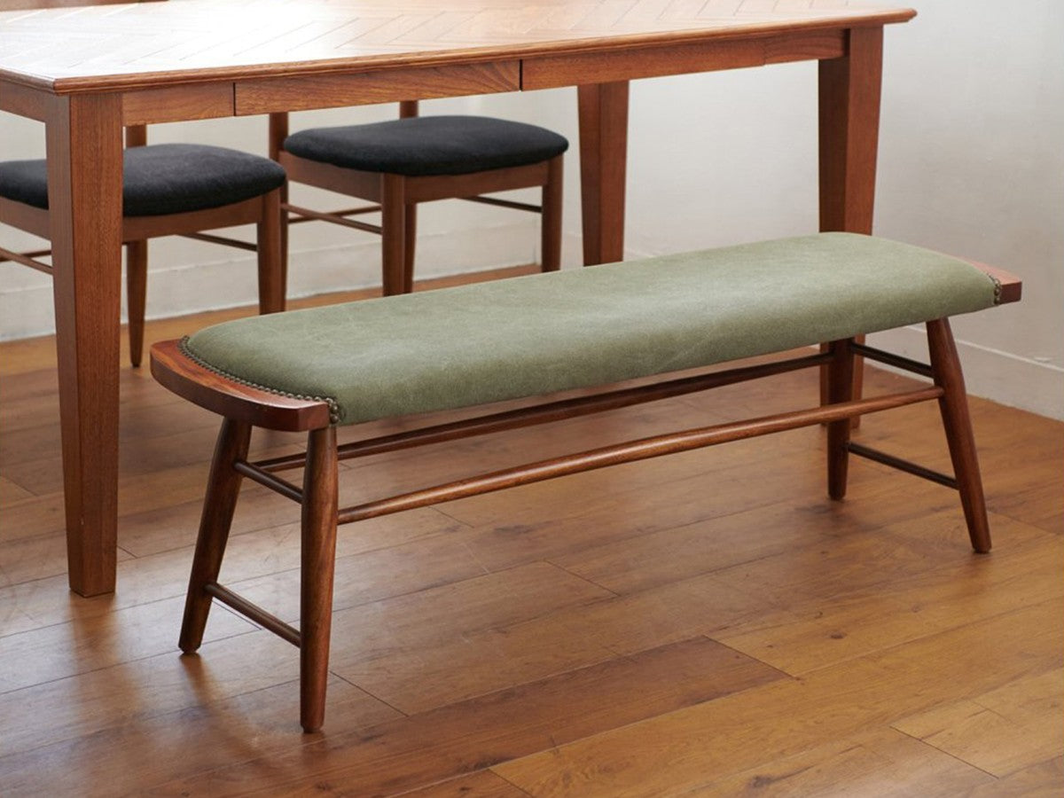 1908年から1948年頃のアメリカ製アームチェアをモチーフに、日本の住宅環境に合わせてリサイズされたベンチ。ダイニングテーブルに収まりが良いように、幅を調整しています。座面はコットンキャンバスにバイオウォッシュ加工を施したファブリック、またはビニールレザーを使用し、ヴィンテージ家具とも相性の良いデザインに仕上げられています。