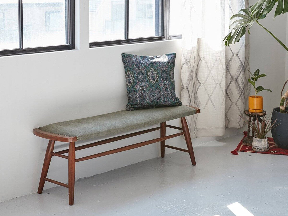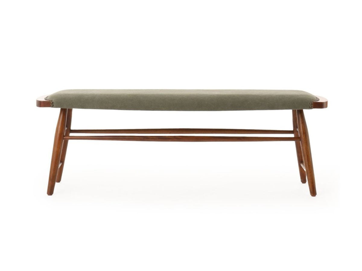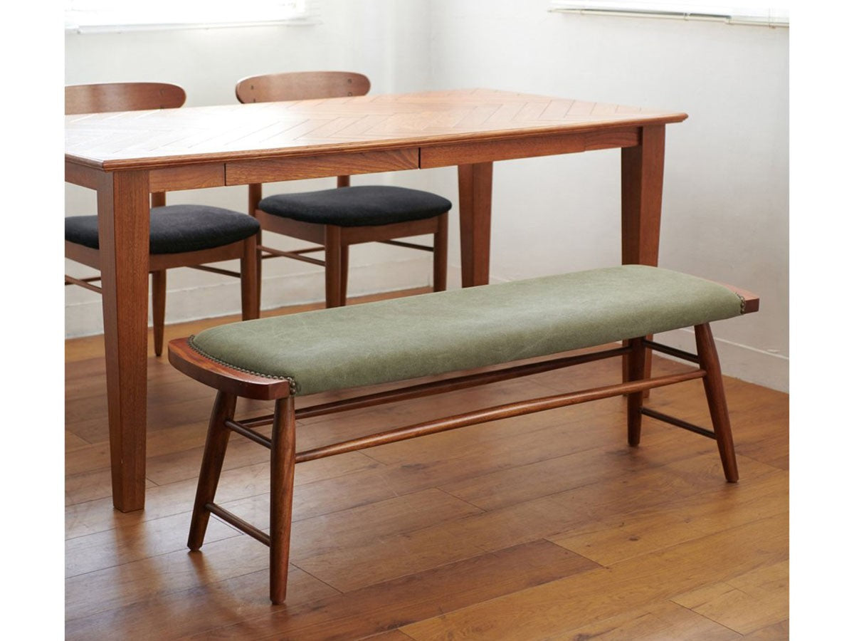 1908年から1948年頃のアメリカ製アームチェアをモチーフに、日本の住宅環境に合わせてリサイズされたベンチ。ダイニングテーブルに収まりが良いように、幅を調整しています。座面はコットンキャンバスにバイオウォッシュ加工を施したファブリック、またはビニールレザーを使用し、ヴィンテージ家具とも相性の良いデザインに仕上げられています。