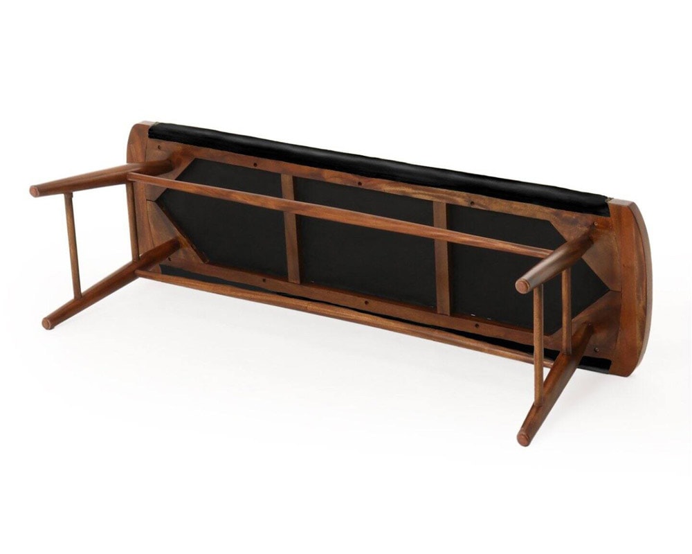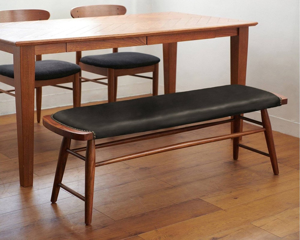 アメリカンヴィンテージを思わせるACME Furniture(アクメファニチャー)の「OAKS BENCH /オークスベンチ」です。1908から1948年まで存在したアメリカ製のアームチェアをモチーフに、日本の住宅環境に合わせてリサイズた「OAKS ARM CHAIR」に合わせられるフラットベンチです。ACME Furnitureで展開しているダイニングテーブル全てに収まりが良いように幅の調整を行いっています。座面にはPVC(合成皮革)を使用し、ヴィンテージアイテムとの相性も抜群です。重厚な作りをしていますので末永くご使用頂けます。フレームに使用されるマホガニーは横行する乱伐や違法伐採を防止するため、ワシントン条約によって天然木の取引が制限されています。この商品の木材はプランテーション栽培で計画的に植林された木材を使用しています。マホガニーは加工性や寸法安定性、耐久性などに優れ、また天然乾燥の速度も速く、ズレや割裂も少ない木材です。家具材、彫刻材、楽器、模型、内部装飾材などに用いられ、高級車のダッシュボードやハンドル、シフトノブにも伝統的に用いられています。