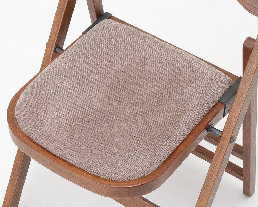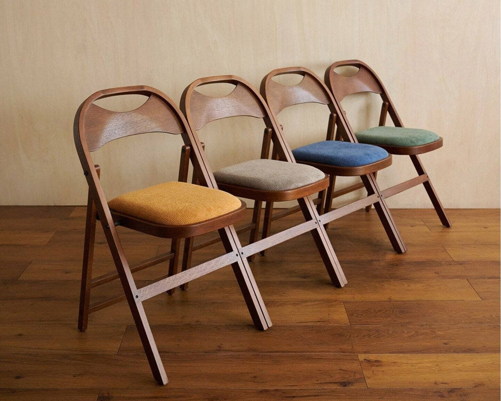 ウッドフレームの特徴的なフォールディングチェア、ACME FURNITURE(アクメファニチャー)の「CULVER CHAIR(カルバー チェア)」の座面がファブリック仕様です。座面を上部に引き上げて折り畳むことが可能で、クッション性のあるシートと体のラインに馴染む背もたれにより、快適な座り心地を実現しています。来客の際のサブチェアとしてはもちろん、ダイニングチェアとしても十分にお使い頂けます。折り畳むと薄くなるため、かさばらないので複数持っていたいチェアです。