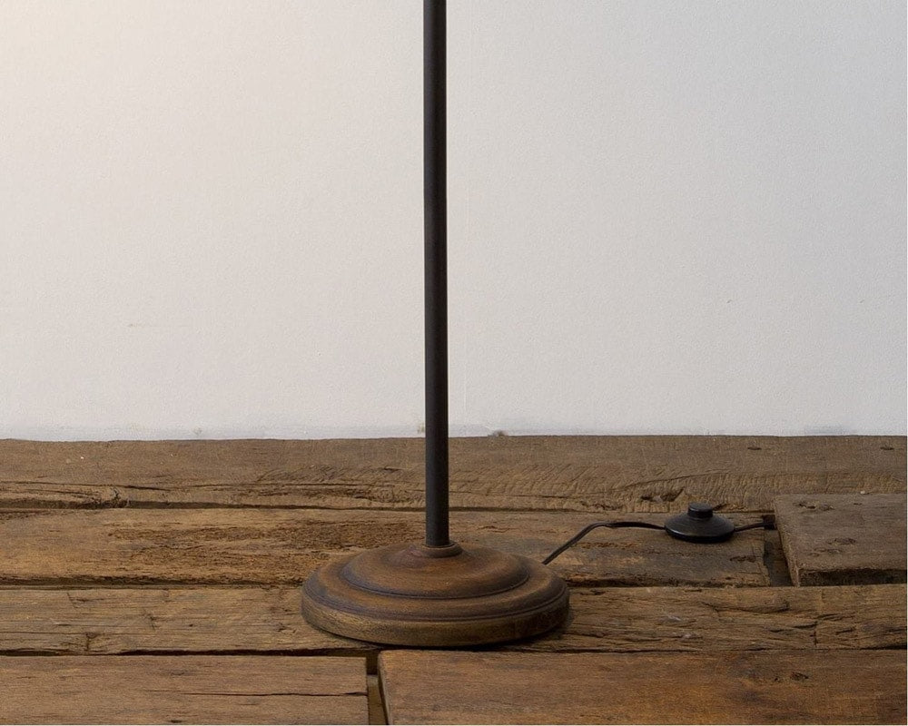 ACME FURNITURE(アクメファニチャー)のフロアライト「BRIGHTON FLOOR LAMP(ブライトンフロアランプ)」です。デザインは1930年代のアメリカ製のヴィンテージランプをモチーフにしました。切削加工をする工作機械「旋盤(せんばん)」で装飾を施した木製の台座にこだわりデザインされています。関節部のスイベルの蝶ナットを手で緩めてお好みの高さやシェードの角度に動かすことが可能です。ベース内部には鉄鋳物の重りが組み込まれ、器具の転倒を防ぎます。スイッチはコードの中間のフットスイッチです。ラウンジチェアのサイド、デスクサイドのランプなど、お好みでお楽しみいただけます。