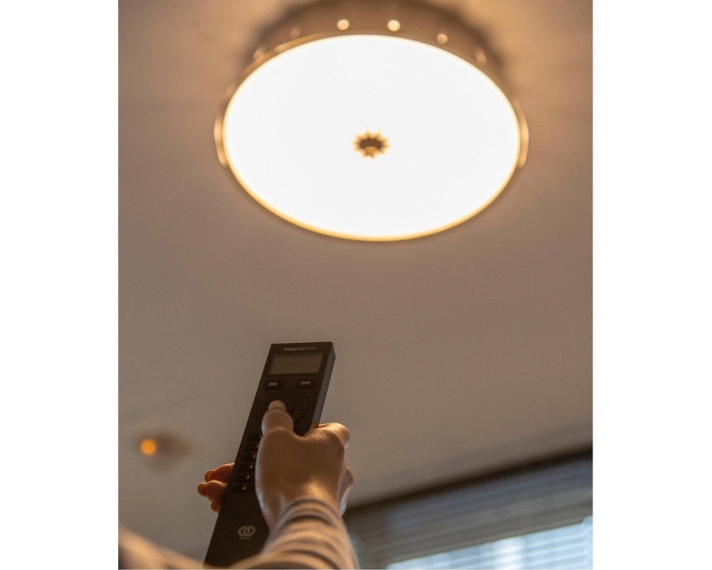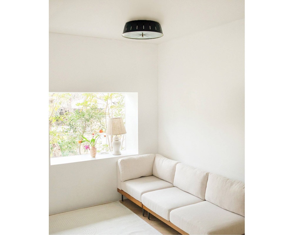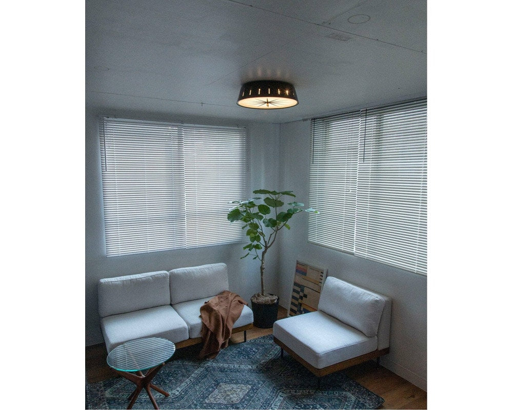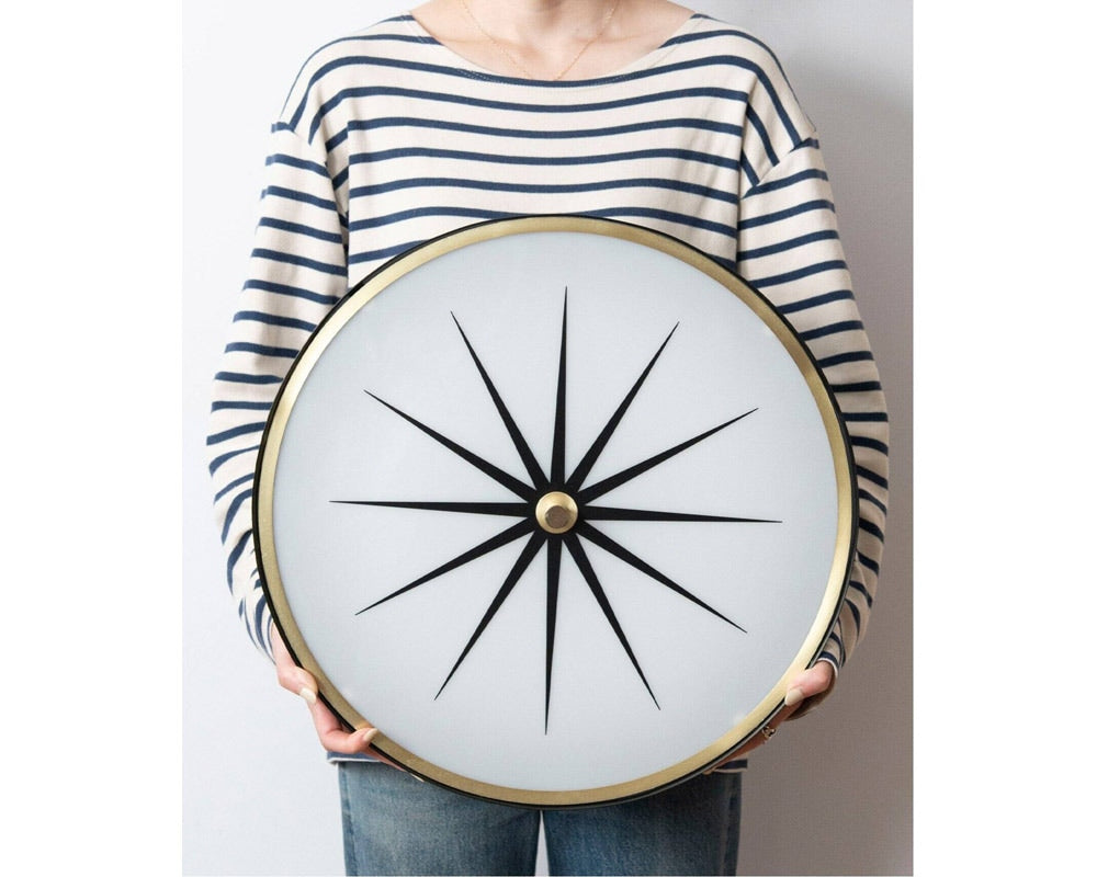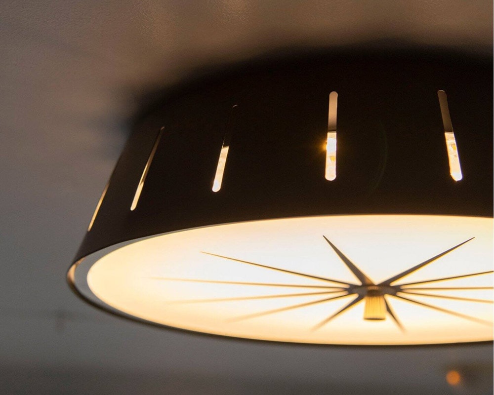 50's〜60'sのUSミッドセンチュリー時代をイメージした、ACME FURNITURE/アクメファニチャーの調光・調色できるLEDシーリングライト「SAGA LED CEILING LIGHT/サーガLEDシーリングライト」です。オリジナルの調光・調色できるLEDシーリングライトです。ACME FURNITUREが提案するミッドセンチュリースタイルに溶け込むシーリングライトをイメージして開発されました。50's〜60'sのUSミッドセンチュリー時代のインテリアアイコンの一つ、アトミックランプを彷彿させるデザイン。この時代のランプはとても個性的で、どれをとっても圧倒されるほどの存在感を放っていました。スペースエイジなデザインを取り入れ、LED器具を採用することで、現代の最新の機能を備えるシーリングライトになりました。サイドのスリットから漏れる光が天井を優しく照らし、その形が盤面の星形のような模様にそっくりなのもまた魅力です。【特徴】 ■光の色味(暖色3000K〜白色6500K)や明るさ(5%〜100%)の切り替えも付属のリモコンで自在に操作可能で、様々なライフスタイルに合ったライティングを楽しむことができます。■〜約12畳までの空間をカバーすることができます。■照明器具本体の厚みは約11センチと薄型設計。取り付けても圧迫感を感じにくいサイズです。■操作性に優れた専用リモコン付き。リモコンは赤外線ではなく「無線式」なので、リモコンを照明器具に向けなくても操作可能です。6チャンネルまであるので同じ部屋に照明を2台設置しても1つのリモコンで個別に操作することが可能です。■スマホアプリ「ROOM SWICH」に対応しています。アプリに照明器具をデバイス追加することで、照明をコントロールできます。■ROOM SWICHアプリはスマートスピーカー(アレクサ、Googleアシスタント)にも対応しています。一度連携すると、スマホなしで音声操作が可能。■付属のリモコンの背面にマグネットが組み込まれていて、スチール製の物に取付ける事ができます。【機能】 ■調光機能(明るさ調節)■調色機能(色味調節)■スマートフォンAPP「ROOM SWICH」対応(アプリの接続にはWi-fi環境が必要です。2.4GHz帯の電波に対応しております。5GHz帯の電波には対応しておりません。お手持ちのルーターにて電波の種類、接続方法をご確認下さい。また購入前にWi-Fiルーターに接続台数の空きがあるか確認してください。)■スマートスピーカー対応(Amazon Echo{Alexa}、Google Nest{Googleアシスタント})