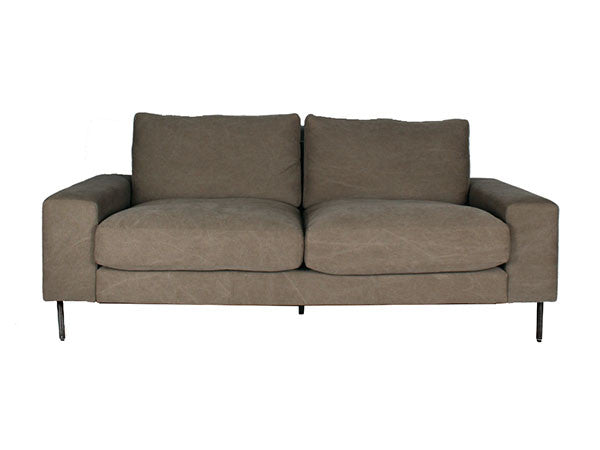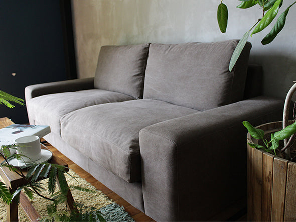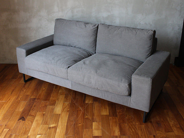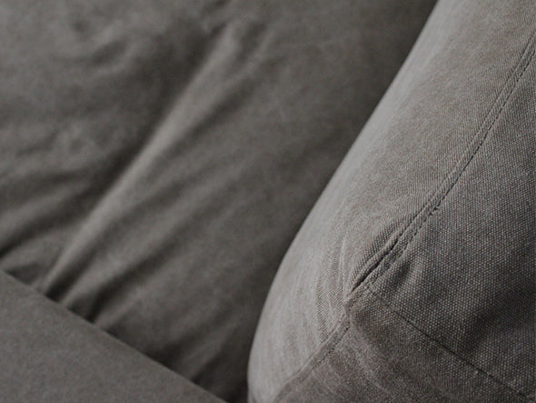 肉厚なボディに細いラインのスチール脚が絶妙なバランスのヴィデルソファ。張地には、一度ウォッシュ加工を施してユーズド感を出したファブリックを使用しています。フルカバーリング仕様でドライクリーニングが可能です。クッションの中材はフェザーでウレタンシートを挟み込む3層構造になっているため、へたりを感じてきたらカバーを外して空気を入れ替えることができ、定期的に上下を変えてお使いいただくことでさらに長くお使いいただけます。丸パイプ脚はかすれ黒塗装を施し、長年使われてきたようなヴィンテージ感のある風合いに仕上げられています。