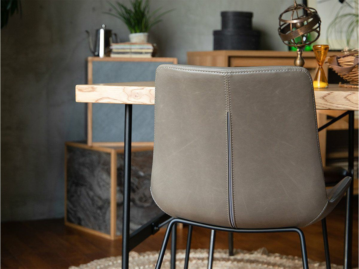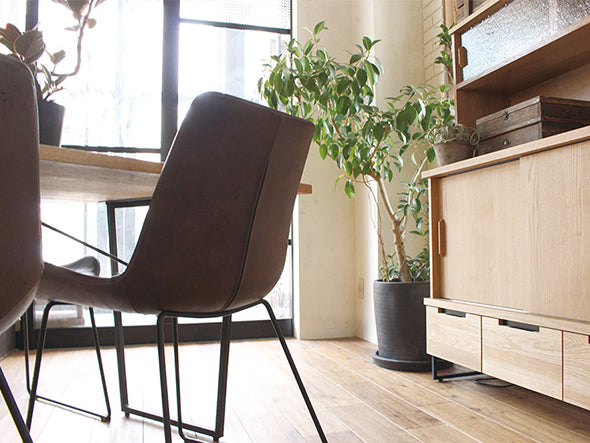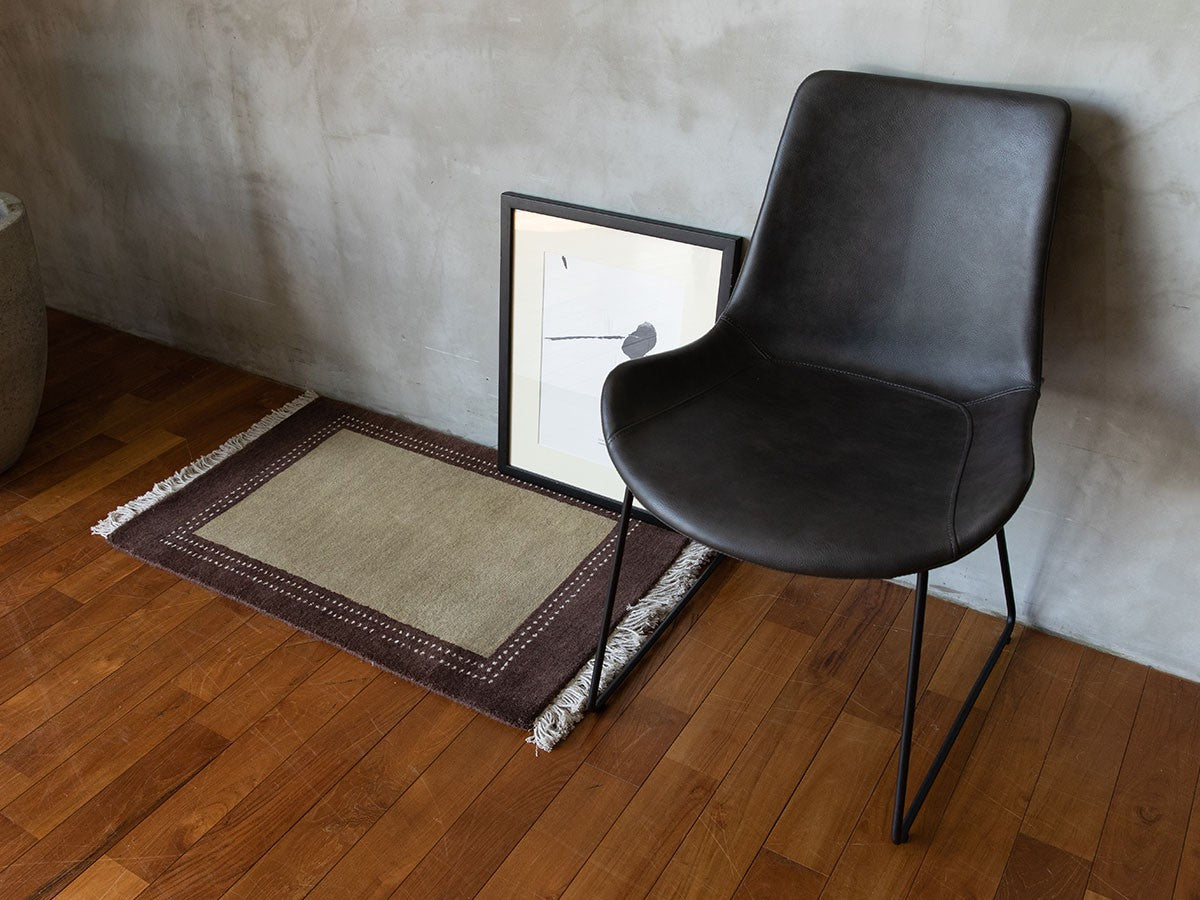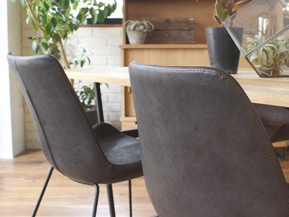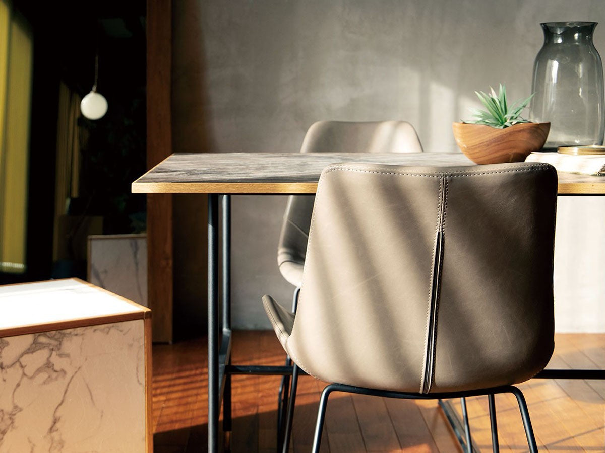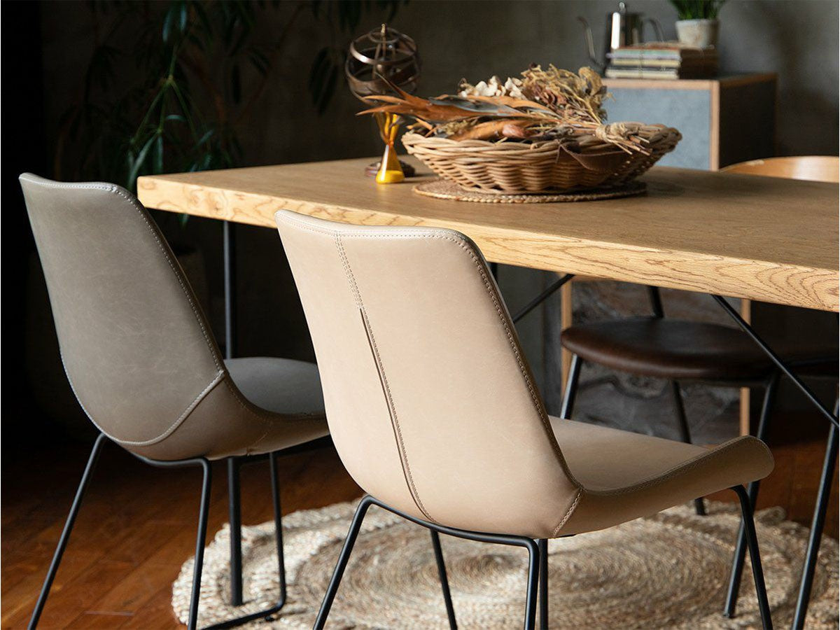 独特のムラ感を持つ合皮を使用したパニッシュシリーズ。ウィングチェアは、心地よいフィット感と曲線美はそのままに、体をさらに包み込むように座面の両側が広がった絶妙なフォルムに成型加工されています。シート背面の中央にはラインが入っており、背面から見た時のアクセントに。脚部には黒く焼き付けた細身のスチールを使用し、素材とフォルムのコントラストが多様なインテリアに溶け込むミックススタイルをつくりだしています。座面にはクッション性があり、張地には耐水性に優れた合皮を使用しています。固く絞った布巾でさっと拭くことができるため、メンテナンスも容易です。