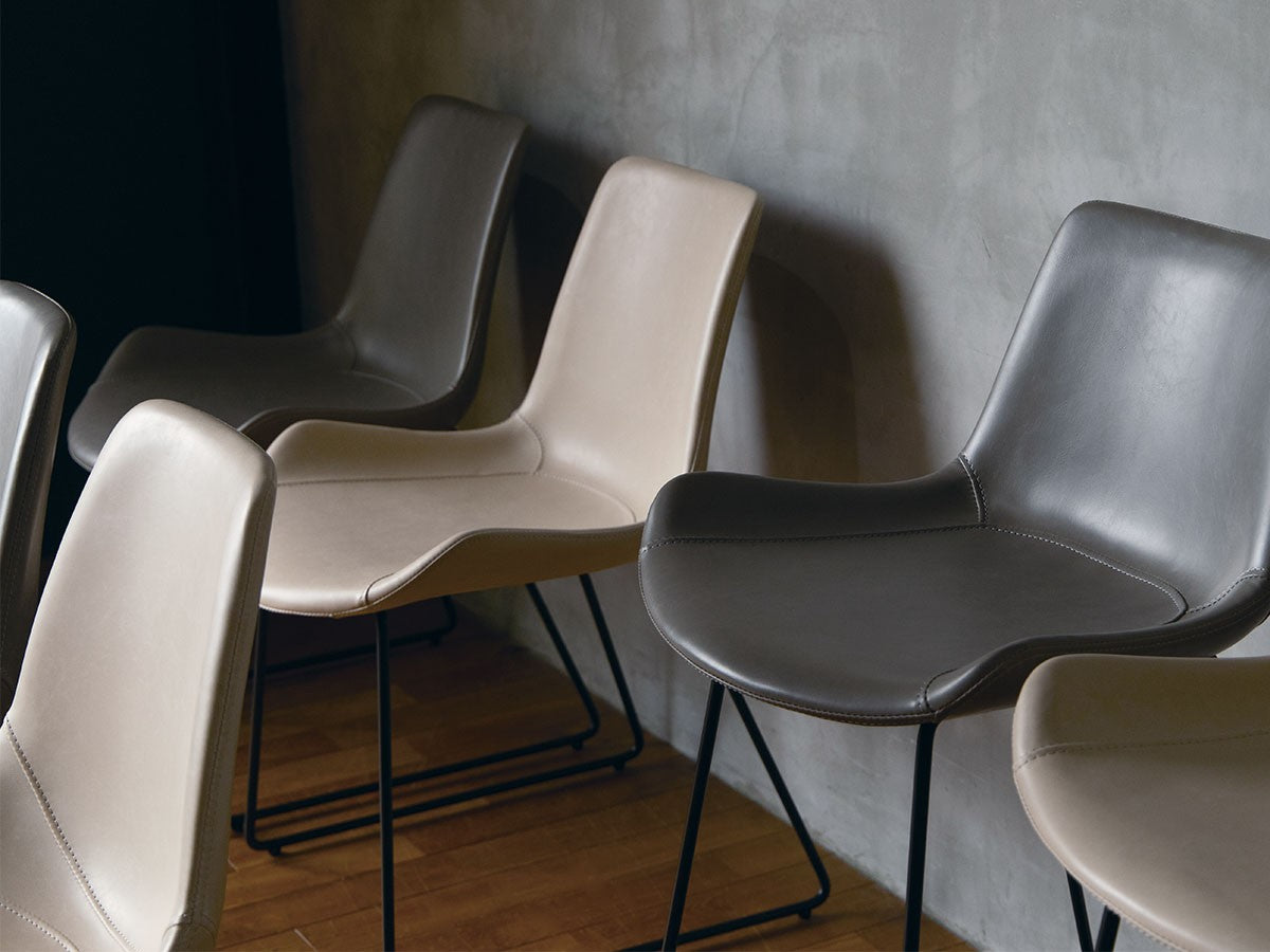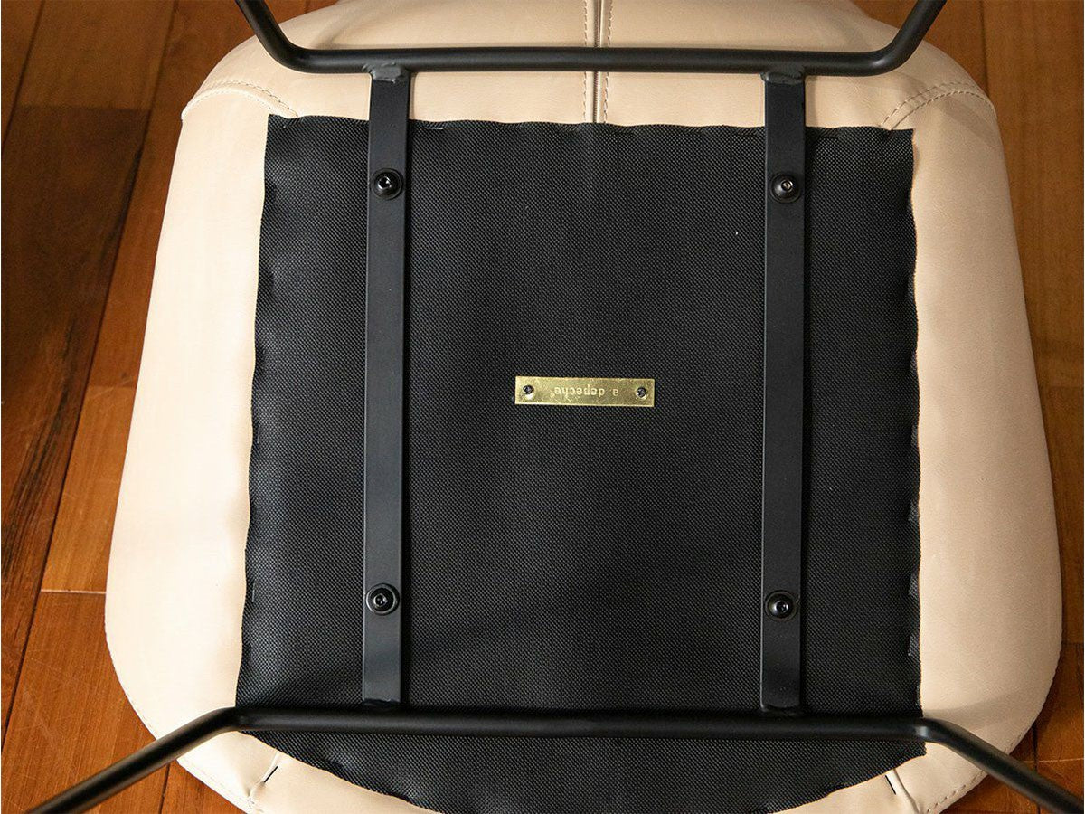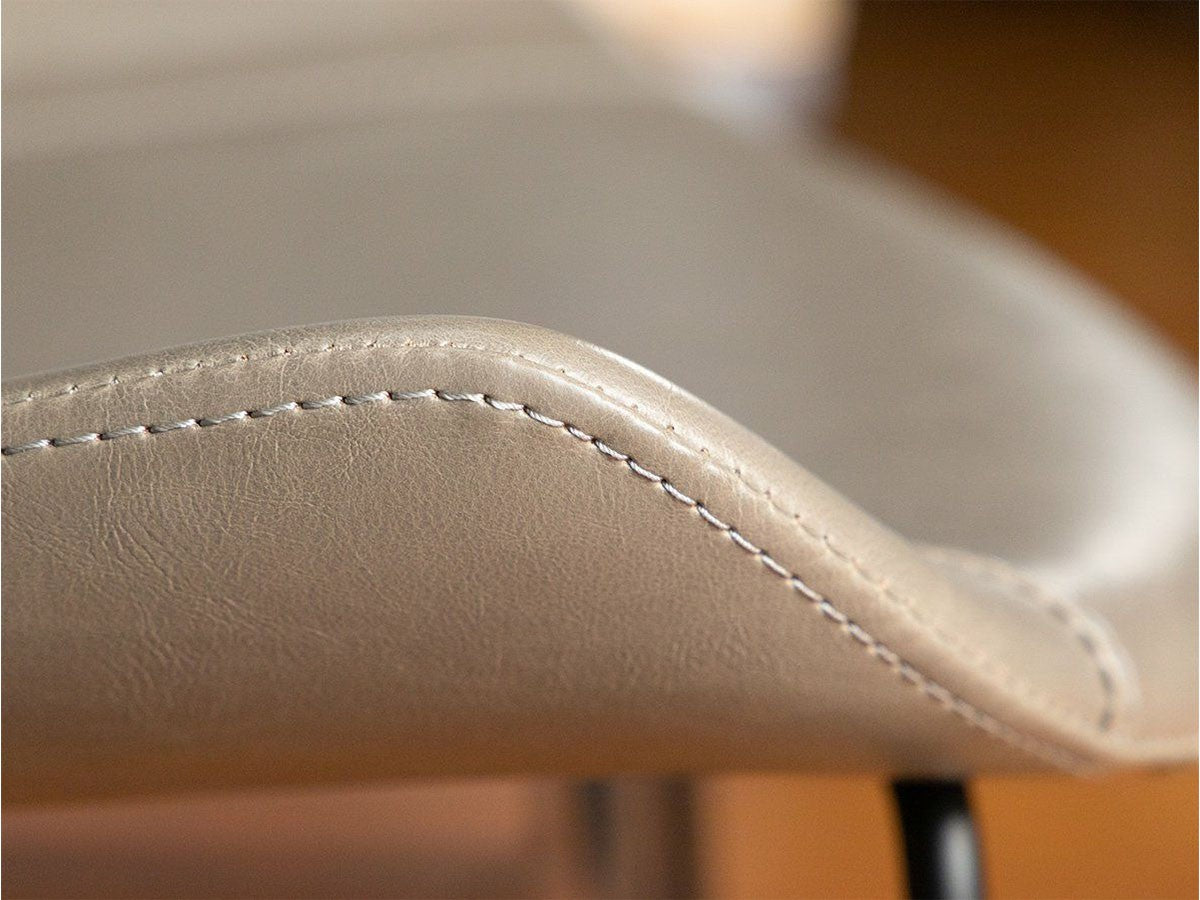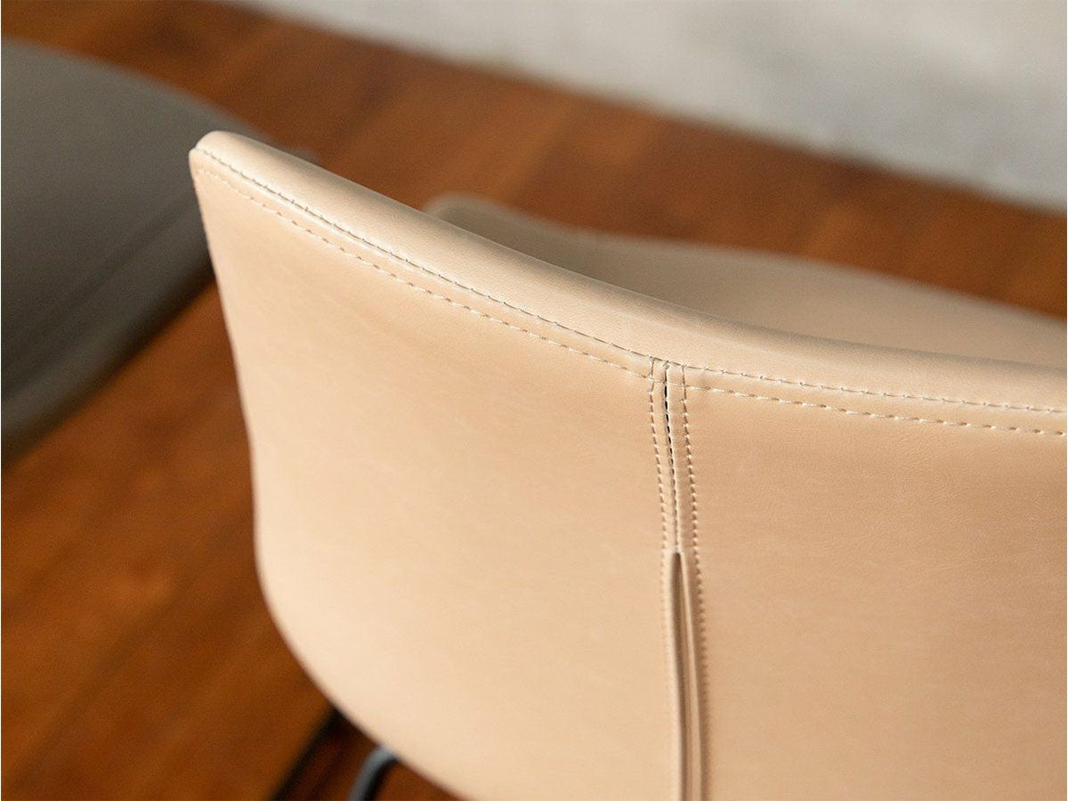 独特のムラ感を持つ合皮を使用したパニッシュシリーズ。ウィングチェアは、心地よいフィット感と曲線美はそのままに、体をさらに包み込むように座面の両側が広がった絶妙なフォルムに成型加工されています。シート背面の中央にはラインが入っており、背面から見た時のアクセントに。脚部には黒く焼き付けた細身のスチールを使用し、素材とフォルムのコントラストが多様なインテリアに溶け込むミックススタイルをつくりだしています。座面にはクッション性があり、張地には耐水性に優れた合皮を使用しています。固く絞った布巾でさっと拭くことができるため、メンテナンスも容易です。