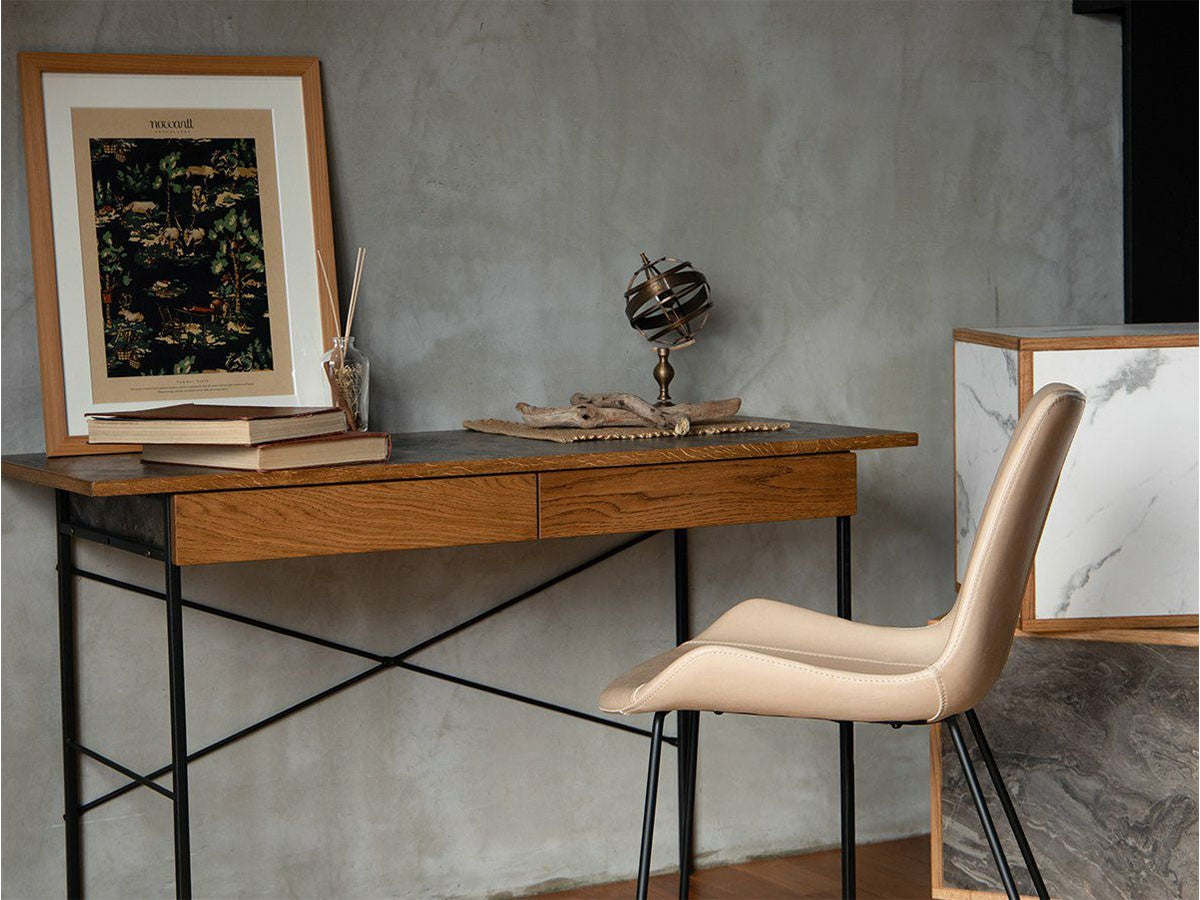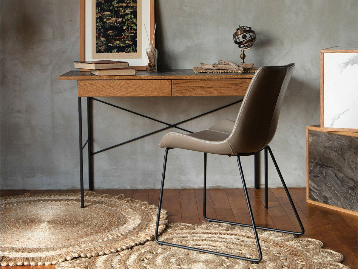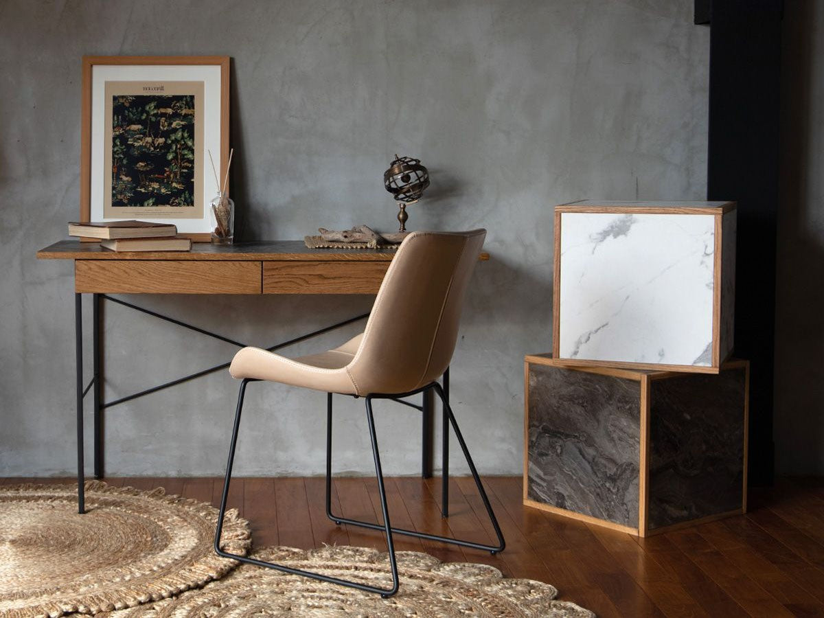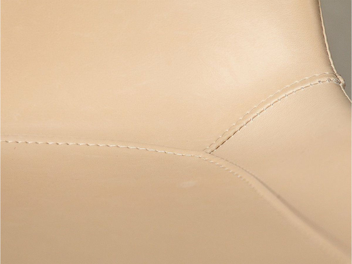 独特のムラ感を持つ合皮を使用したパニッシュシリーズ。ウィングチェアは、心地よいフィット感と曲線美はそのままに、体をさらに包み込むように座面の両側が広がった絶妙なフォルムに成型加工されています。シート背面の中央にはラインが入っており、背面から見た時のアクセントに。脚部には黒く焼き付けた細身のスチールを使用し、素材とフォルムのコントラストが多様なインテリアに溶け込むミックススタイルをつくりだしています。座面にはクッション性があり、張地には耐水性に優れた合皮を使用しています。固く絞った布巾でさっと拭くことができるため、メンテナンスも容易です。