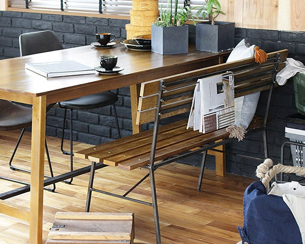 パイン材を使用したカントリーテイストをa.depeche/アデペシュらしく現代風にアレンジしたmodage/モダージュシリーズのハイバックベンチです。使い込んだようなヴィンテージ感を表現するためサンドブラスト加工を施し、木目を強調した独特な手触りと艶のある質感に仕上げられています。幅が114cmとコンパクトなので、存在感のあるアイテムでありながら、ダイニングテーブルとあわせても十分楽しんでいただけるサイズ感です。背もたれの裏面には雑誌やファブリックなどを掛けることが可能なバータイプのスチールが取り付けられ、デザインだけでなく機能的にも遊び心が感じられ、また便利なアイテムです。新しい試みの現代風カントリーmodage/モダージュシリーズは、他にキッチンボード、テレビボードや、ダイニングテーブル、チェア等も揃っていますのでトータルコーディネートも可能です。