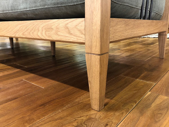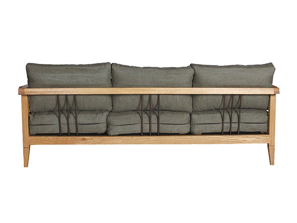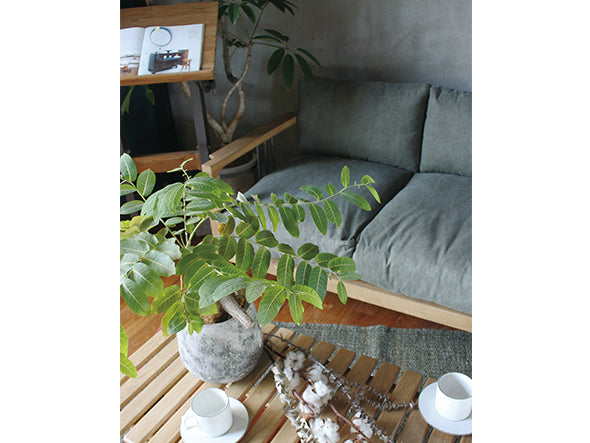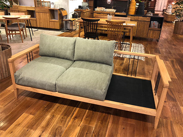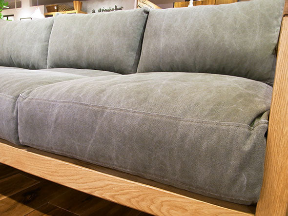 オーク無垢材とムラ感のあるファブリックを組み合わせた居心地の良い雰囲気を漂わせる3人掛けソファ。さり気ないスチール使いが全体のデザインを引き締め、アデペシュらしい中性的な空気感を作り出しています。ホワイトオークをふんだんに使用していますが、解放感のあるデザインが重厚感を和らげ軽やかな印象を与えます。クッションは座り心地にも配慮した3層構造。クッション性が気になった時には上下を逆さまにしたり、お手入れをすることでふかふかのクッションを長く楽しめます。張地はウォッシュ加工を施したラフな仕上がりです。カバーリング仕様のため、取り外してドライクリーニングができます。soloはナチュラルテイストをモダンに、でもどこかノスタルジックにデザインされたシリーズです。ナチュラルな色合いは、"splem"や"cadeal"などの他シリーズとも相性良く馴染みます。