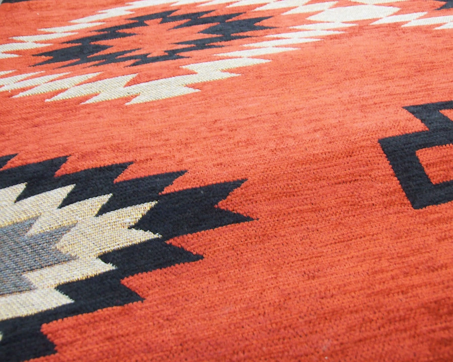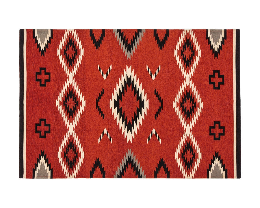 トレンドでもあるグレイッシュトーンとレッドを基調ににしたBasShu(バッシュ)のラグマットです。短い毛足のシェニール糸を使ったソフトな肌触りで、素足でも心地よく、オールシーズン使っていただけるラグです。カラフルで派手なな印象が強いネイティブ柄を、特徴的なモチーフやパターンはそのままに、レッドを基調に落ち着いたトーンで仕上げています。サイズは2〜3シーターのソファ前に最適な大きさで、西海岸テイストやインダストリアル、北欧、ナチュラルなお部屋まであわせやすい、万能なデザインです。
