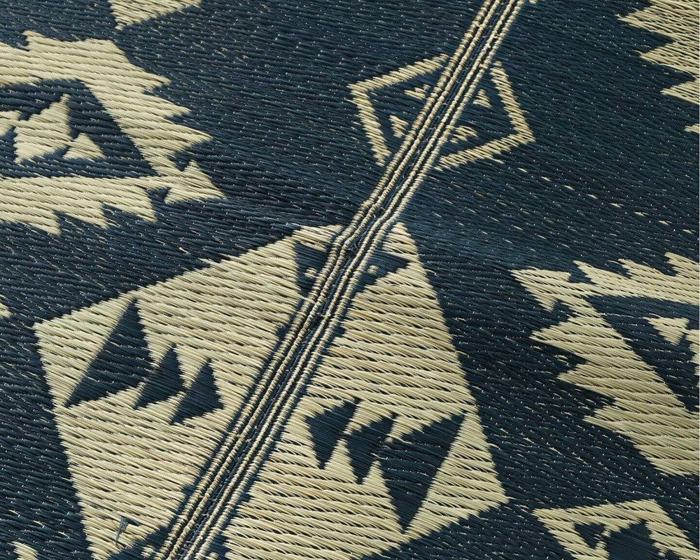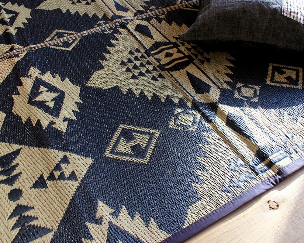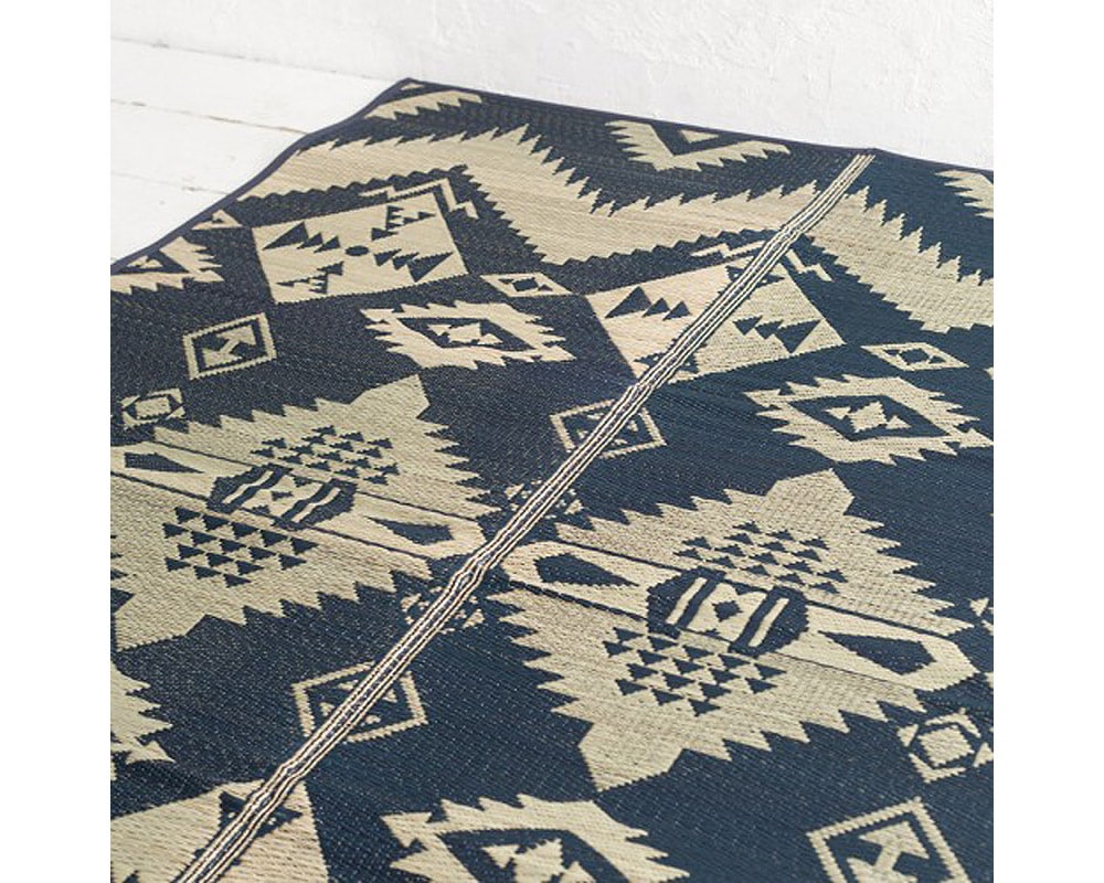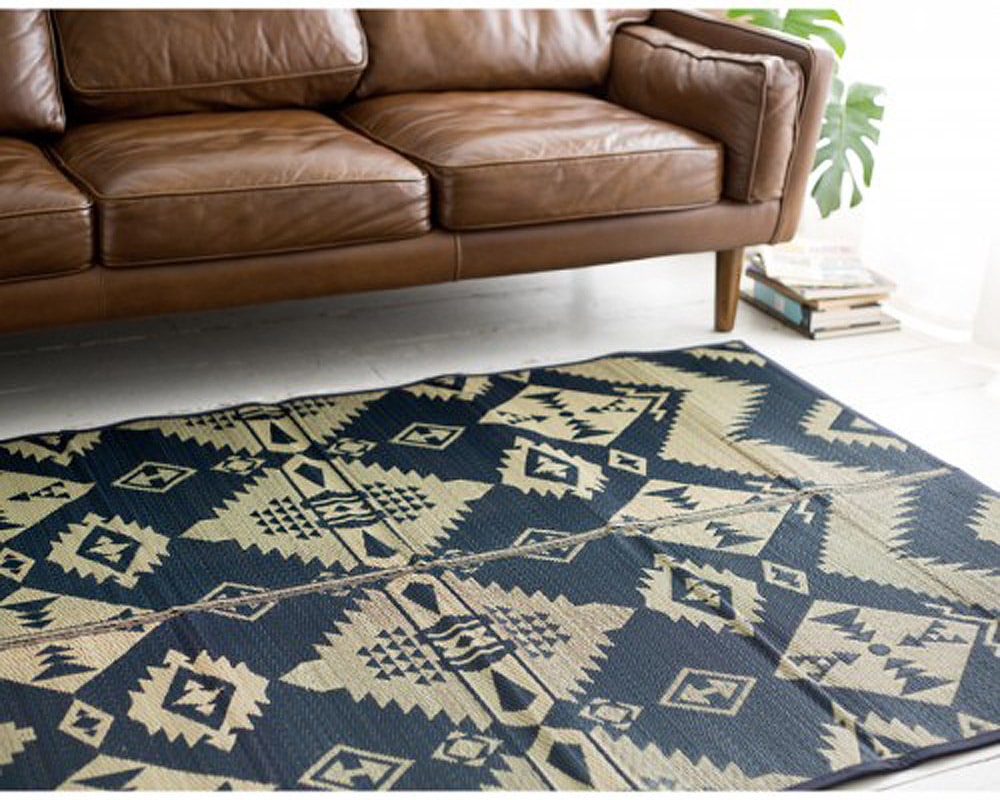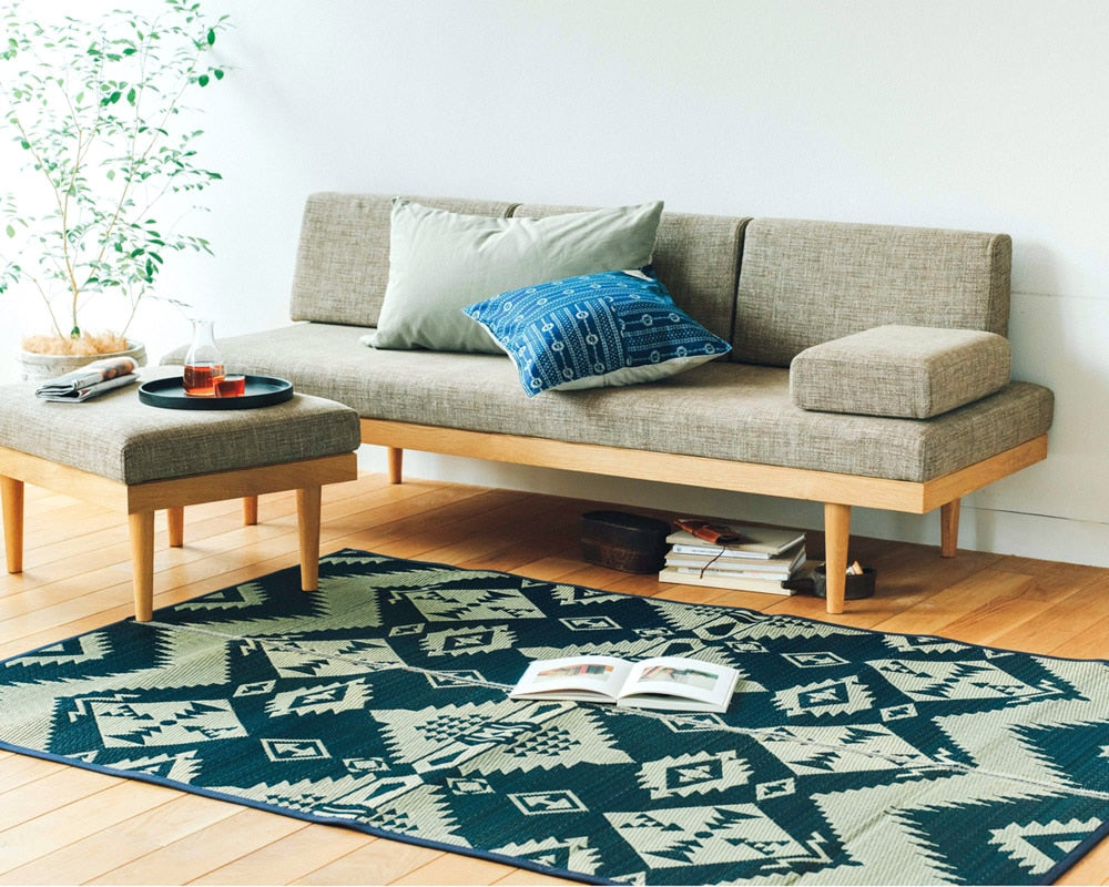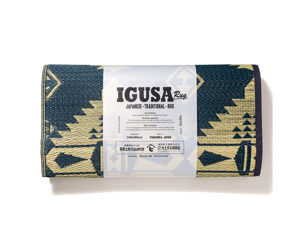 さらりと涼しく、座っても、寝そべっても気持ちいい。「たたみ」の良さを生かして作られた「IGUSA RUG/ い草ラグ」です。「IGUSA RUG/ い草ラグ」はBasShuらしくソファやベッドに合わせられるデザインを追求して作られています。素材には熊本県八代市のい草を100%使用し、織りは明治19年より畳表(たたみおもて)づくりに携わる筑後の老舗「池上彦太郎商店」が製作しています。職人が片時も目を離さず、い草に余分な負荷をかけないよう機械をゆっくりと動かしているため、1日にわずか5〜6枚しか生産できません。しかしこの手間と技術こそがIGUSA RUGのクオリティであり、存在感です。IGUSA RUGの柄は、アメリカ先住民の古いテキスタイルにインスピレーションを得ています。そして、どの柄にも必ず染めていない自然のままの「い草」本来の色を取り入れることによって、新しくもどこか懐かしい涼しげな雰囲気に仕上げました。また、いわゆる「ござ」と呼ばれるい草の敷物とことなり、IGUSA RUG にはやや厚みのあるウレタンフォームの裏地をつけてクッション性を高めました。このわずかな厚さの違いがフローリングに敷いたときの快適さを生みます。また収納時には、中央の継ぎ部分で二つに折りたためるので、コンパクトに保管できます。