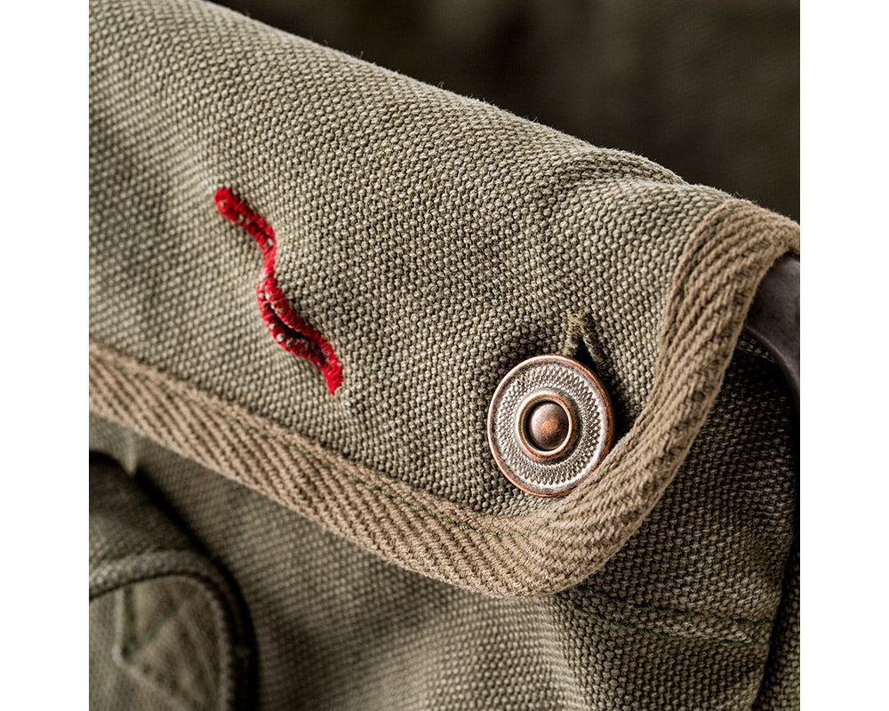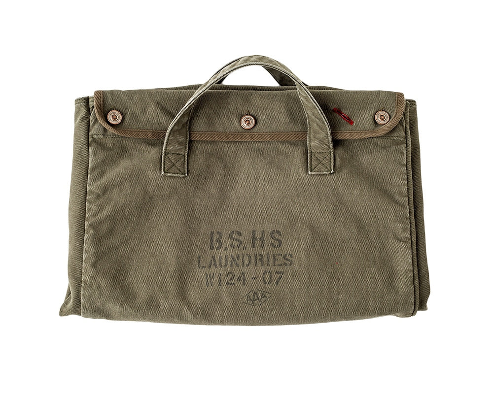 正面のプリントや細部にまでこだわったディテールが特徴の「BasShu(バッシュ)」のフレーム付ランドリーバッグです。Made in Japanの丈夫で耐久性の高いコットンキャンバスを使った、BasShuらしいミリタリーテイストのランドリーバッグです。縫製後のユーズド加工にこだわり、使い込んだようなこなれたキャンバスの表情を最大限に引き出しています。また、実際にモノを入れるバッグ内側にはほつれや縫い目が出ないようテープを採用し、使いやすさとデザインの両方が兼ね備えられています。さらに、フロントのフラップ部分には、BasShuを象徴する赤ステッチのボタンホールもしっかりと付けられています。ランドリーバスケットとして以外にも、本や雑誌、玩具や衣類等置き場所に困るものの収納ラックとしてもお使いいただけます。