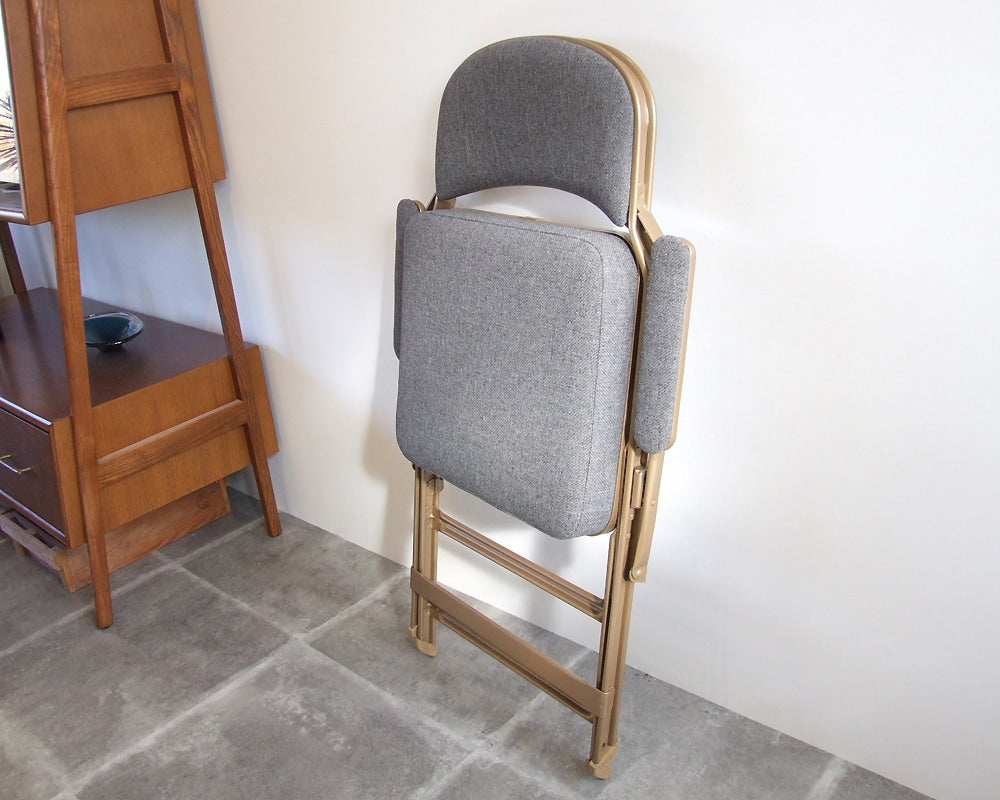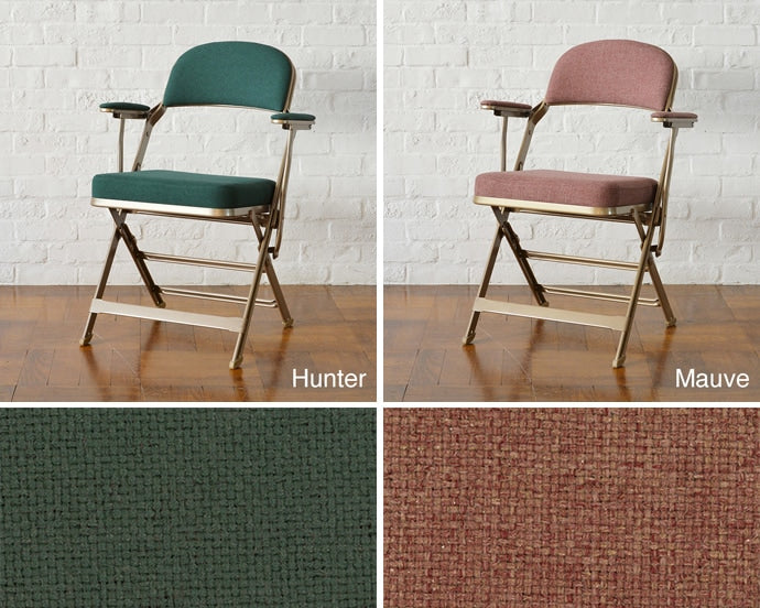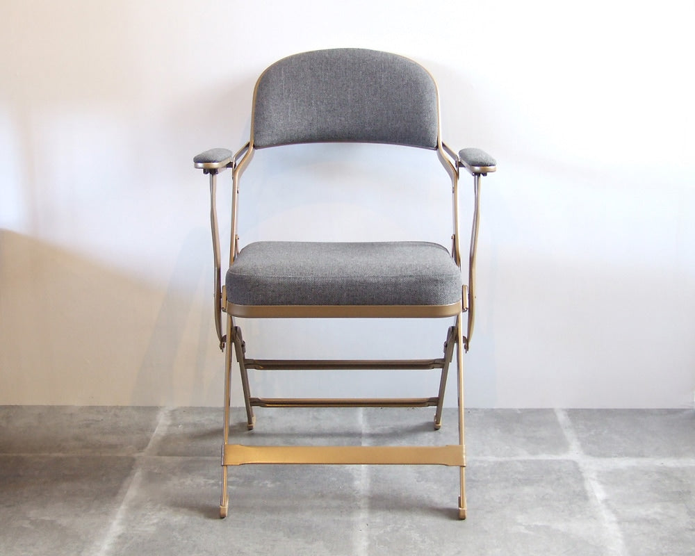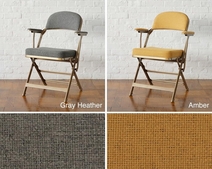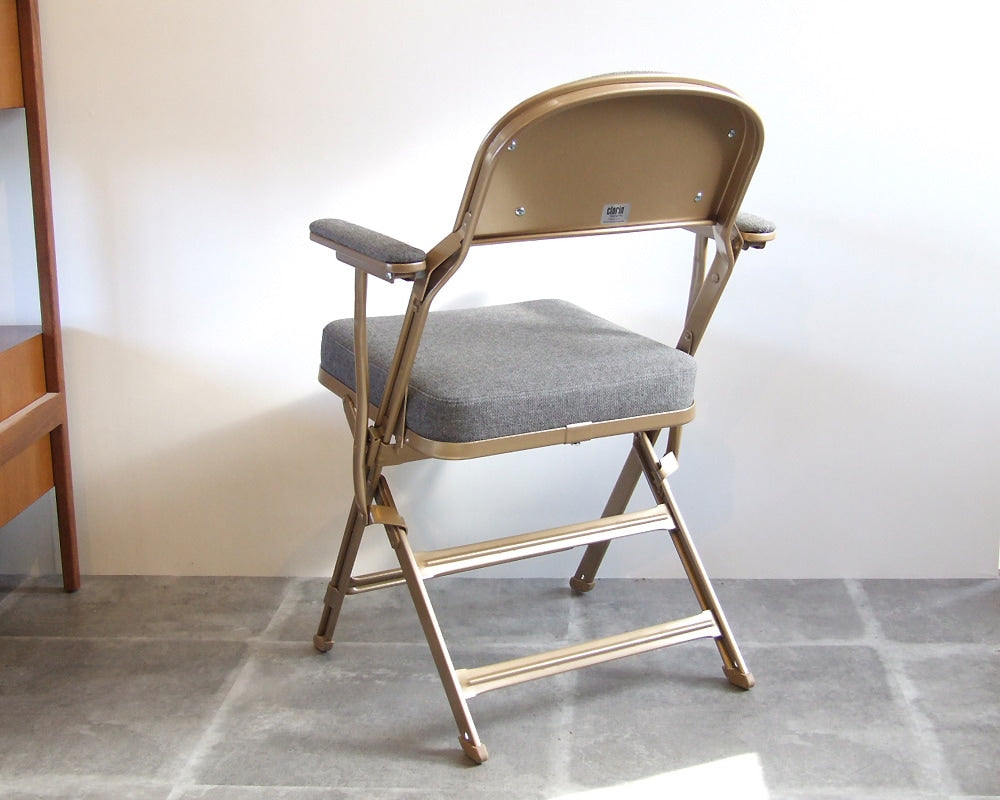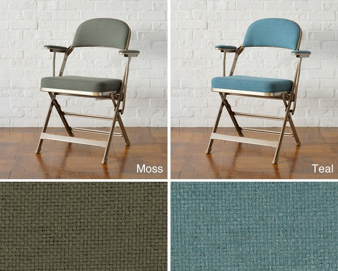 1925年から作り続けられている、アメリカCLARIN(クラリン)社のフォールディングチェア。フルクッション・アーム付のタイプです。2017からアメリカ製の新生地に変わりカラーもリニューアルされました。このフォールディングチェアは、マディソンスクエアガーデンを始め、スタジアム・学校など、米国の様々な場所で使用されているパブリックスペースでの代名詞的な存在となっています。フレームが荷重を分散させるXフレームの構造により、起伏ある場所でも椅子を水平に保ち、安定した座り心地を実現。両端を丸めたスチールフレームは通常のパイプフレームより高い強度、耐久性、柔軟性を提供。脚の接地面には摩耗しづらい特殊ラバーを採用。耐久性に優れかつ、床を傷つけにくくしています。折りたたんだ時の薄さは80mmと非常に薄く、背から脚まで一直線となり、かさばらず、美しく収納できます。この商品は長時間座っても疲れないクッションとアーム付きのタイプです。張り地カラーはAmber(マスタード)、GrayHeather(グレー)、Hunter(深緑)、Mauve(アズキ色)、Moss(モスグリーン)、Teal(青緑)の6色からお選びいただけます。弾力があるクッションなので、通常のチェアとして最適で、ダイニングテーブルやデスクに合わせても抜群に格好良くなります。