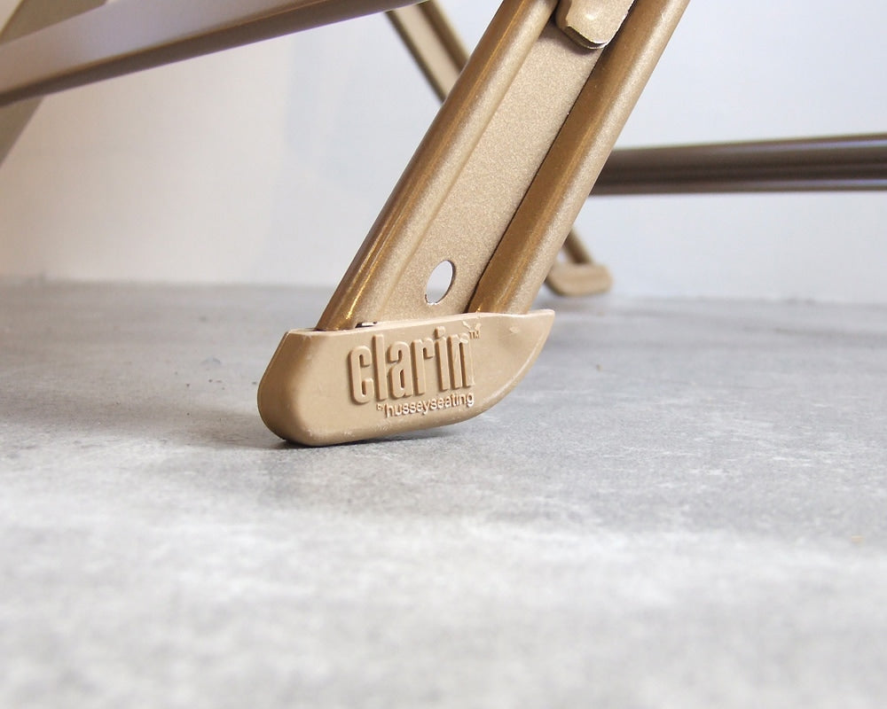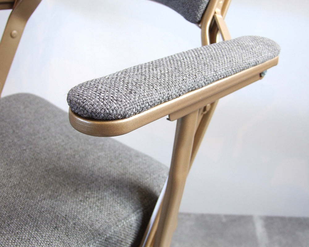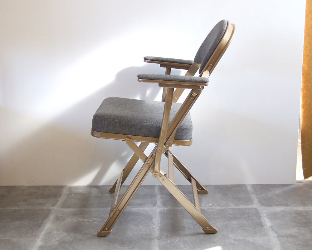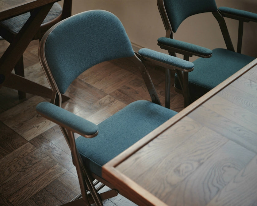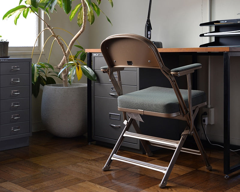 1925年から作り続けられている、アメリカCLARIN(クラリン)社のフォールディングチェア。フルクッション・アーム付のタイプです。2017からアメリカ製の新生地に変わりカラーもリニューアルされました。このフォールディングチェアは、マディソンスクエアガーデンを始め、スタジアム・学校など、米国の様々な場所で使用されているパブリックスペースでの代名詞的な存在となっています。フレームが荷重を分散させるXフレームの構造により、起伏ある場所でも椅子を水平に保ち、安定した座り心地を実現。両端を丸めたスチールフレームは通常のパイプフレームより高い強度、耐久性、柔軟性を提供。脚の接地面には摩耗しづらい特殊ラバーを採用。耐久性に優れかつ、床を傷つけにくくしています。折りたたんだ時の薄さは80mmと非常に薄く、背から脚まで一直線となり、かさばらず、美しく収納できます。この商品は長時間座っても疲れないクッションとアーム付きのタイプです。張り地カラーはAmber(マスタード)、GrayHeather(グレー)、Hunter(深緑)、Mauve(アズキ色)、Moss(モスグリーン)、Teal(青緑)の6色からお選びいただけます。弾力があるクッションなので、通常のチェアとして最適で、ダイニングテーブルやデスクに合わせても抜群に格好良くなります。