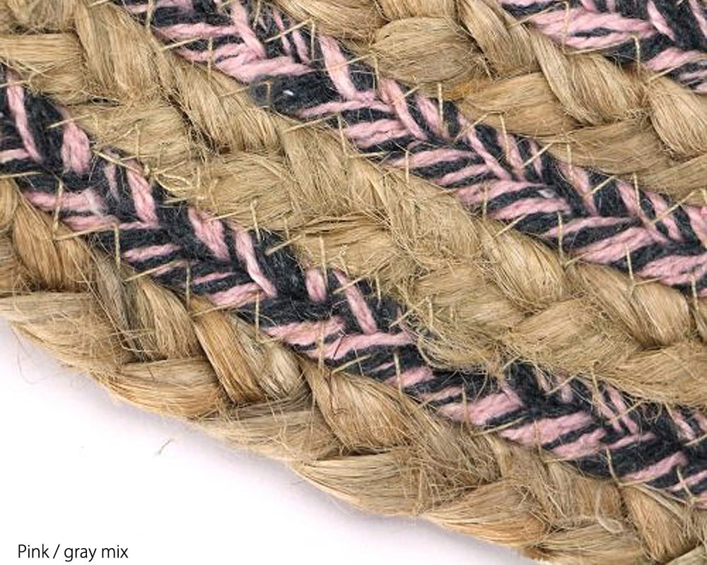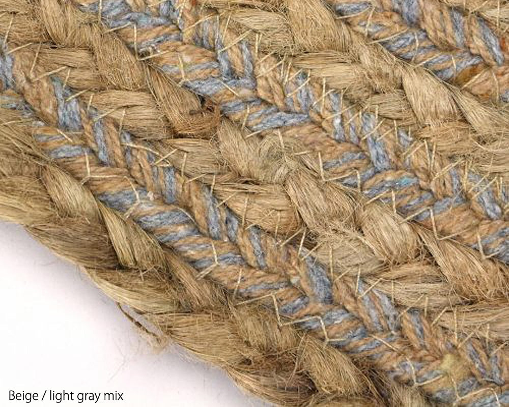 2色のコットンを手編みのジュートと交互に編み込んだラウンドラグ「Jute & Cotton Round Rug /ジュート&コットン ラウンド ラグ 」です。 ジュート・黄麻(コウマ)は調湿性、通気性、耐久性に優れ穀物を運搬する袋としても昔から利用されている素材でラグとしても需要の高い素材です。 アクセントになっているコットン部分は「Beige / Light gray」「Pink / Gray」「Purple / Mint」の3色で展開しています。 サイズは直径120cmあり、椅子の下などに敷いたり、ベッドサイドやソファの足元などに最適なお手頃なラグマットです。