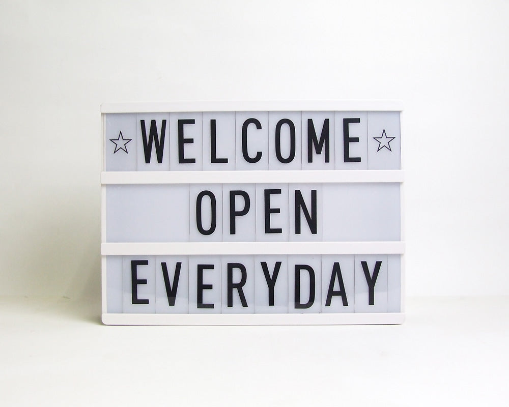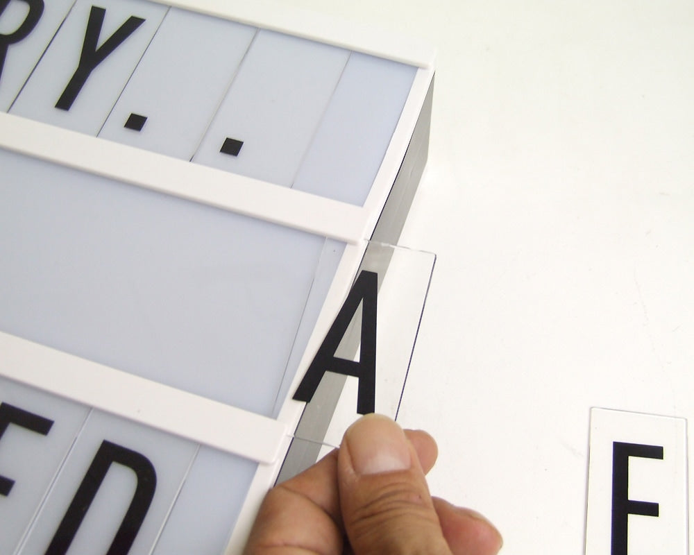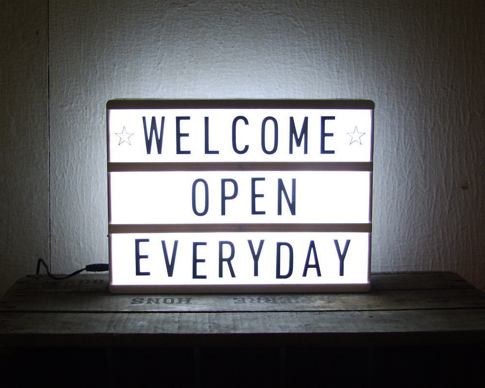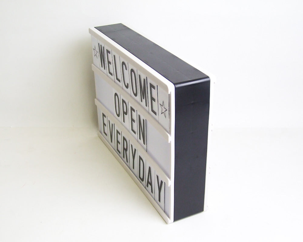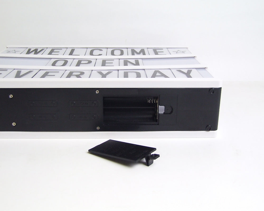 ダイナーやガススタンドにあるような文字組を自由に変えられる、両面使用可能なLEDサインです。 『コンパクトで両面使用可能』 コンパクトで置き場所を選ばず、両面を使用することができるため、例えばお店では、窓の外に向けてオープン表示、店内側からは禁煙表示に使用するなど、アイデア次第で簡単かつ格好良くディスプレイができます。 もちろんお部屋でも使い勝手が良く、お好きな文字を並べて間接照明としてもお使いいただけます。 『電池・アダプター兼用』 電池、ACアダプターのどちらでも使用できますので、置き場所を選ばずお使いいただけます。(ACアダプター付属) 『LEDで省電力』 内部の照明は、LEDを使用しているため省電力で熱くなりません。あまり電気代を気にせず、インテリアライトとして、サインとして長時間点灯していただけます。