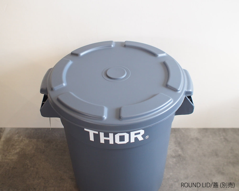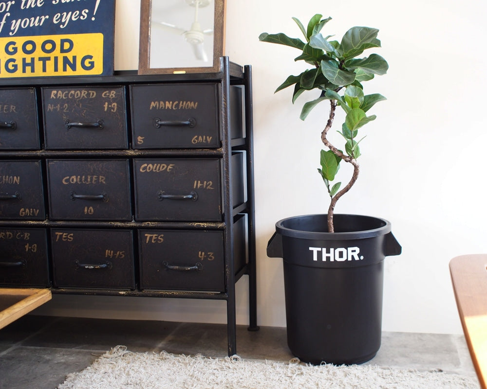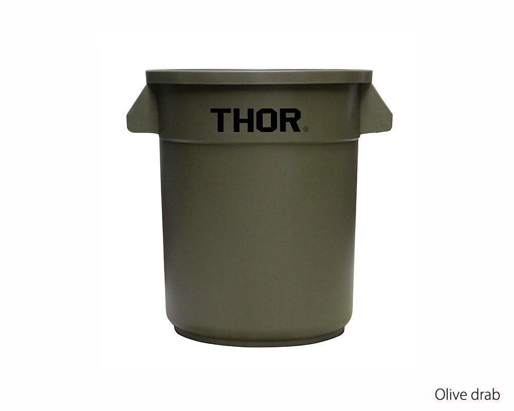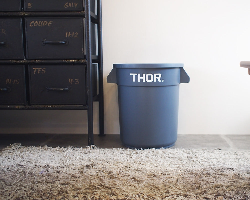 業務用メーカー「Trust/トラスト」社の「THOR Round Container/ソーラウンドコンテナ」です。「THOR」のロゴプリントが目を引くラウンドコンテナ/ダストボックスです。ホテルやレストラン向けの業務用メーカーの製品で、その頑丈なプラスチックで作られた業務用っぽさが良い感じです。収納用のコンテナとして、ガサッと洗濯物を入れるコンテナとしてランドリー横に、また大きめの植物の鉢カバーとして・・・見た目の良いコンテナは様々な用途にお使いいただけます。また、ダストボックスとして使用し、見た目や臭いの気になる場合には別売(¥800)の蓋をご用意しています。今っぽい3色展開で、インテリアのアクセントになってくれること間違いありません。