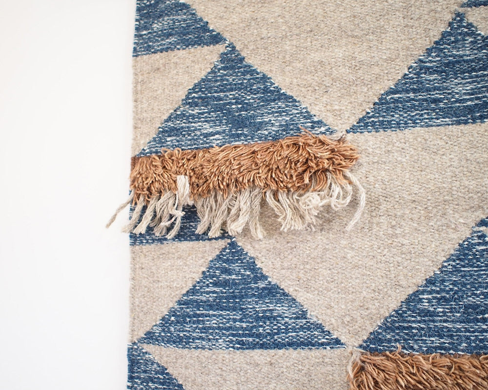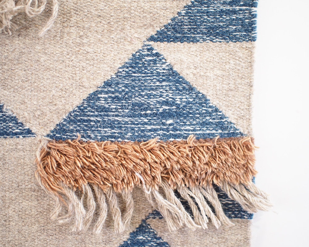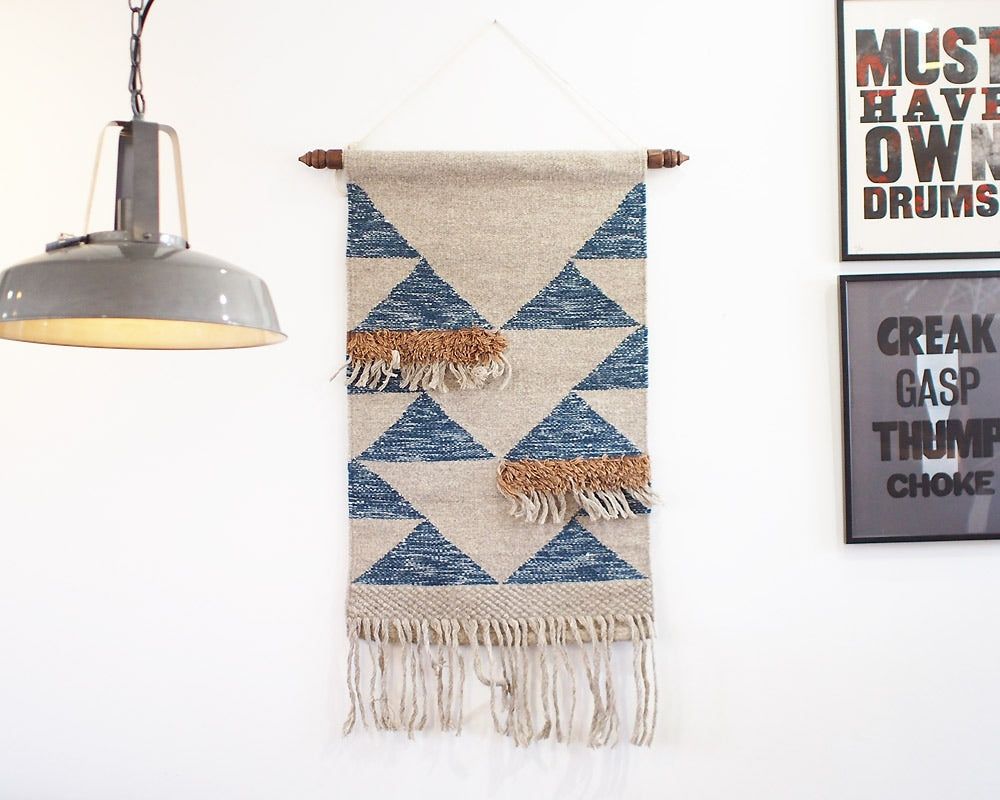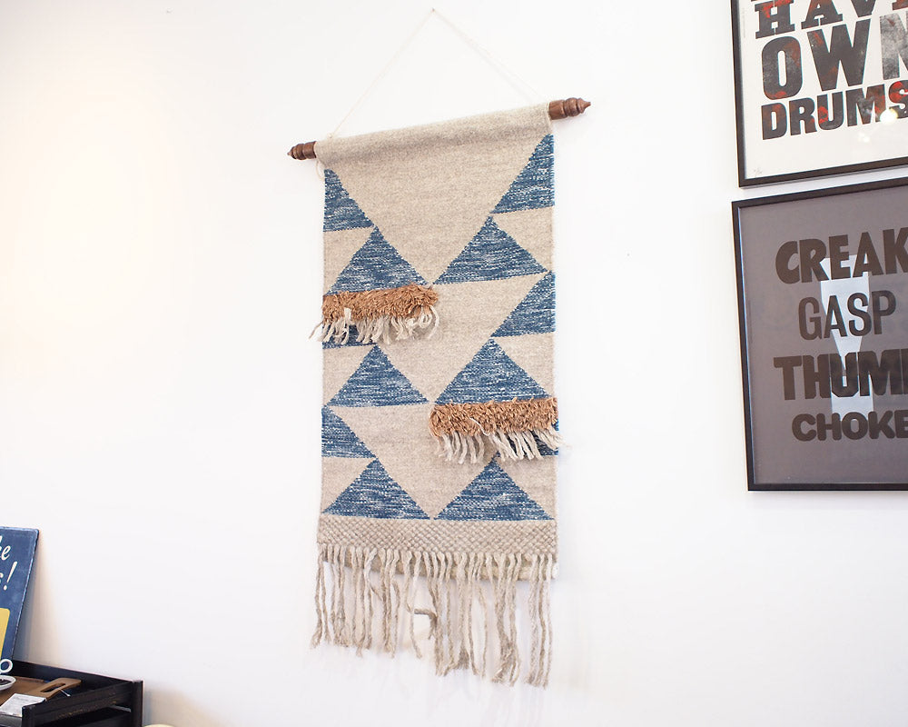 ウールとコットンで編み込まれたウォールタペストリーです。 アートとして、壁面を飾るのにおすすめのウィービングタペストリーです。ネイティブモチーフにクラフト感を絶妙にミックスし、ウィービングが生み出す立体的なパターンは、壁面に彩りを与えてくれます。 大きめのサイズ感で、1枚壁に掛けるだけでお部屋の雰囲気を一気に変えてくれます。